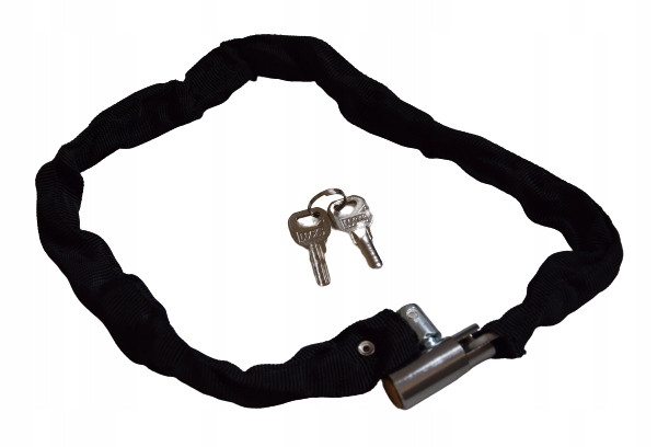 Міцний міцний ланцюг виготовлений із високоякісної загартованої сталі. Броньований замок загартований, а його конструкція захищає від спроб підчепити та просвердлити замок. Ланцюг покритий естетичним і атмосферостійким матеріалом, який додатково захищає велосипед від подряпин. Довжина 80 см дозволяє легко закріпити велосипед.