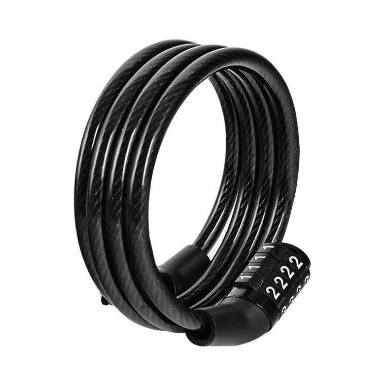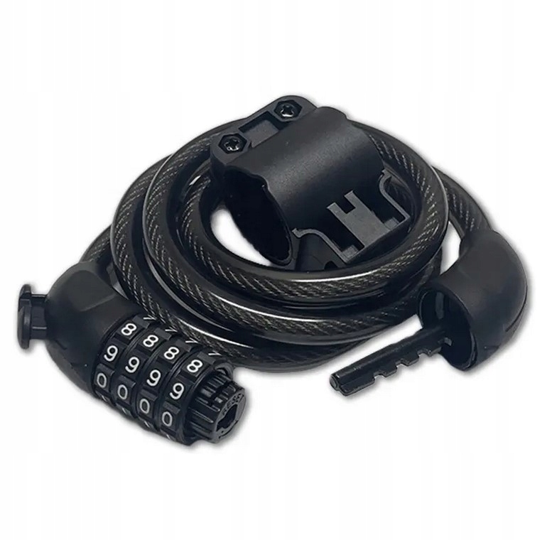 Міцний сталевий трос, покритий пластиком, стійкий до порізів і атмосферних впливів. Кодовий замок гарантує високий рівень безпеки, а в набір входить ручка, яка пригвинчується під сідлом.