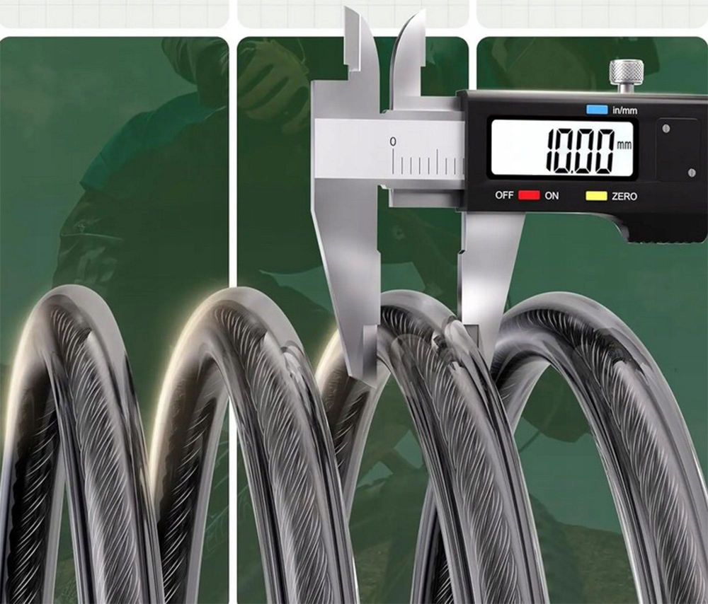- Міцний трос: виготовлений зі сталі та покритий пластиком, трос стійкий до порізів та погодних умов і має товщину до 10 мм!
