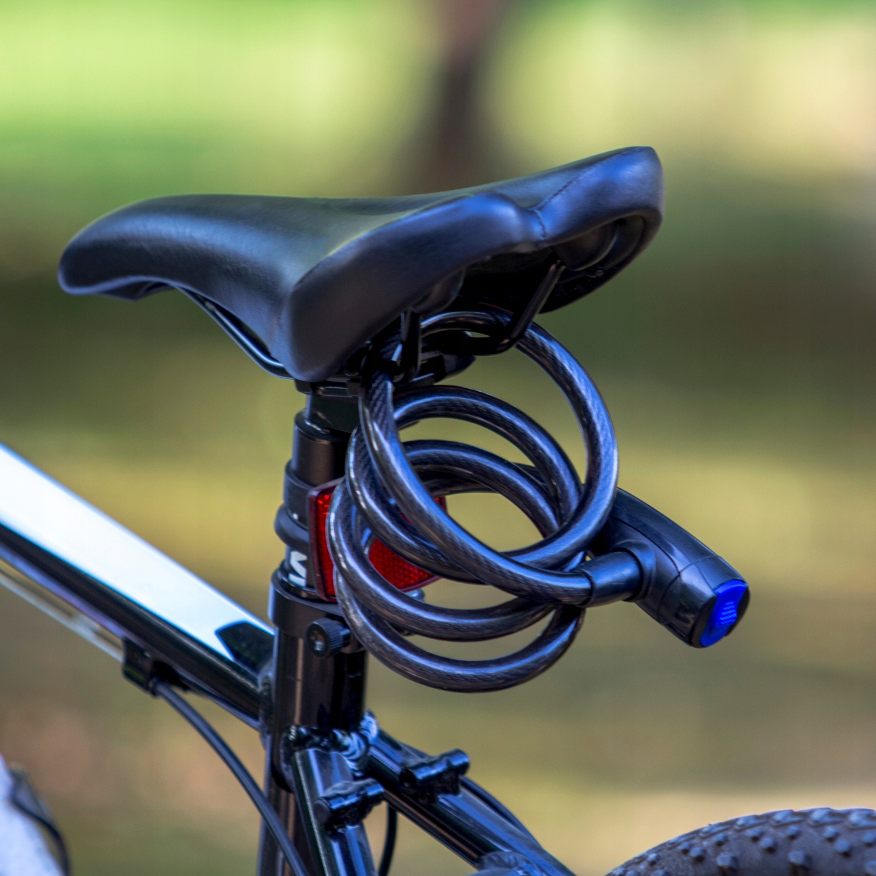 Велосипедний трос виготовлений з високоякісної нержавіючої сталі товщиною до 12 мм, покритий силіконовою оболонкою, а замок виготовлений з твердого ПЕ матеріалу