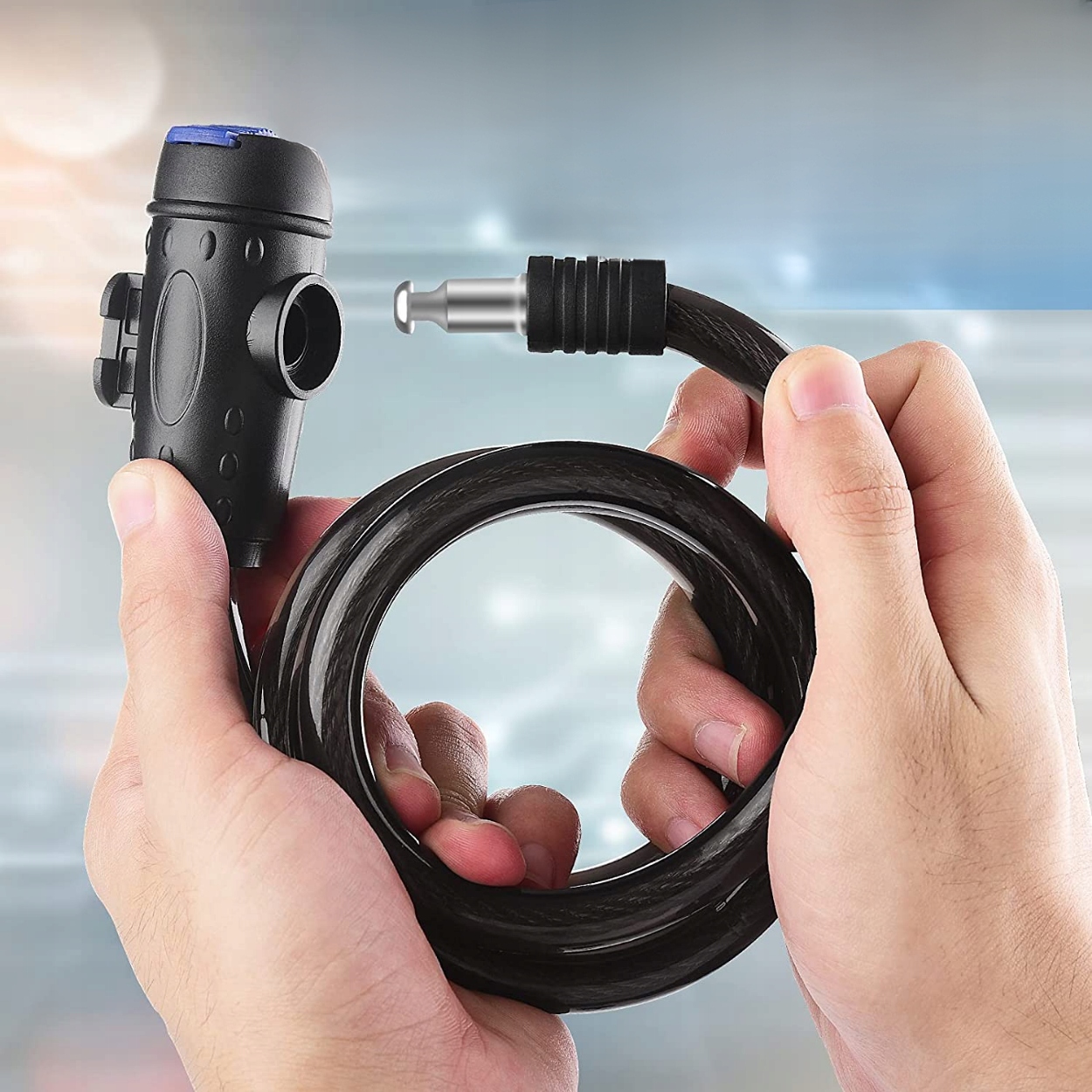 ВИСОКА ЯКІСТЬ - Велосипедний трос виготовлений з високоякісної нержавіючої сталі товщиною до 12 мм, покритий силіконовою оболонкою, і замок виготовлено з твердого поліетиленового матеріалу