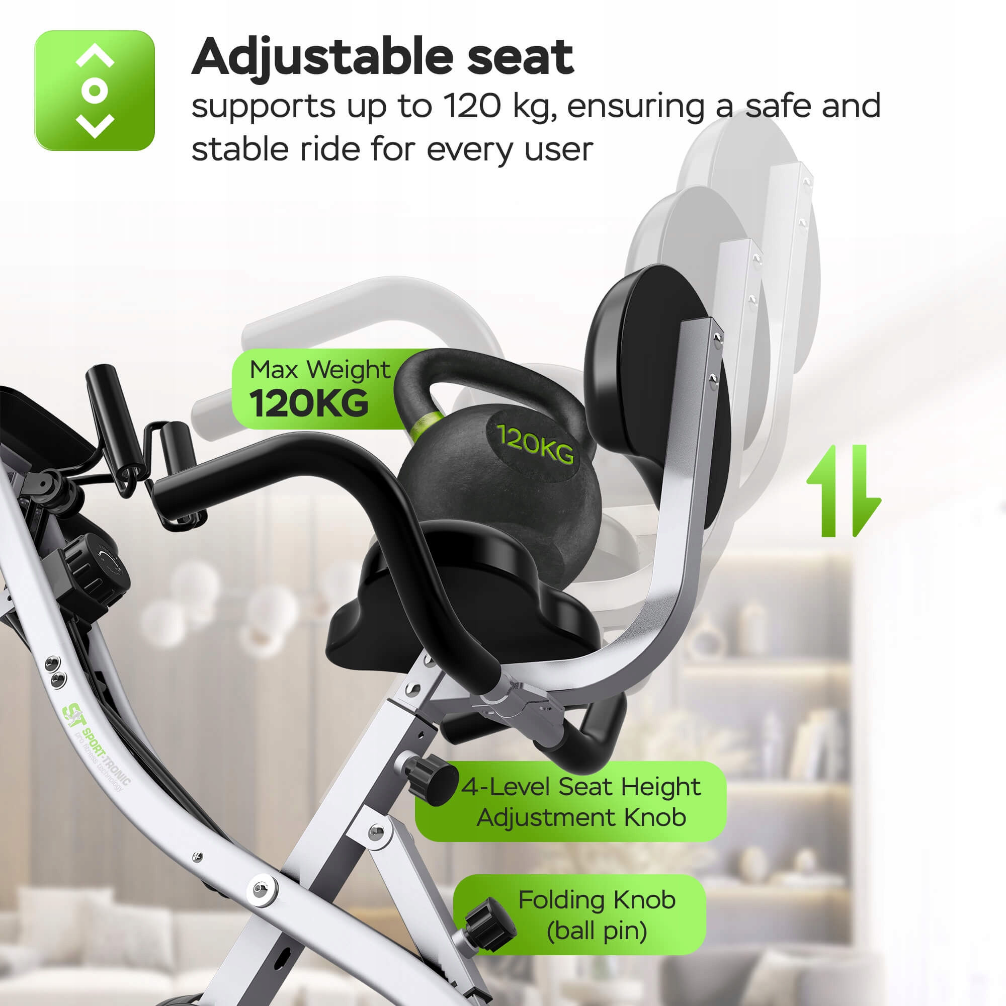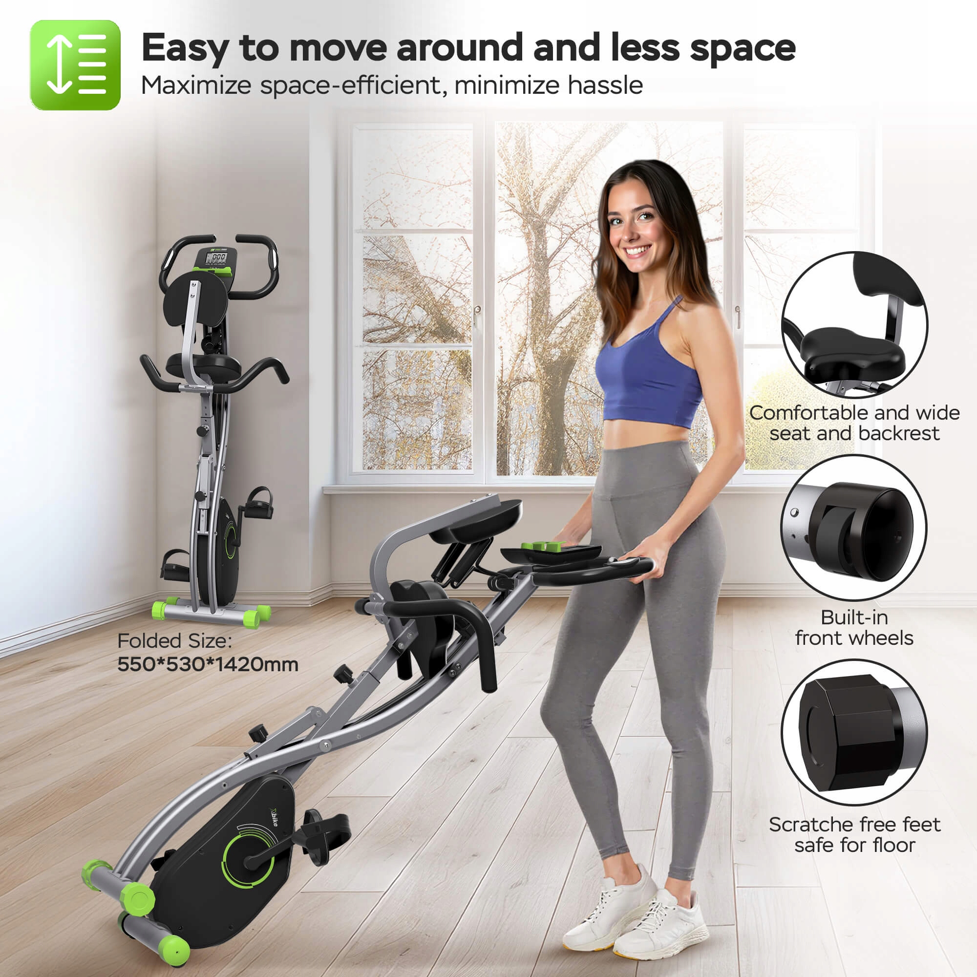 Більше жодного важкого обладнання, що захаращує кімнату! Велосипед розроблено з думкою про ваш комфорт.