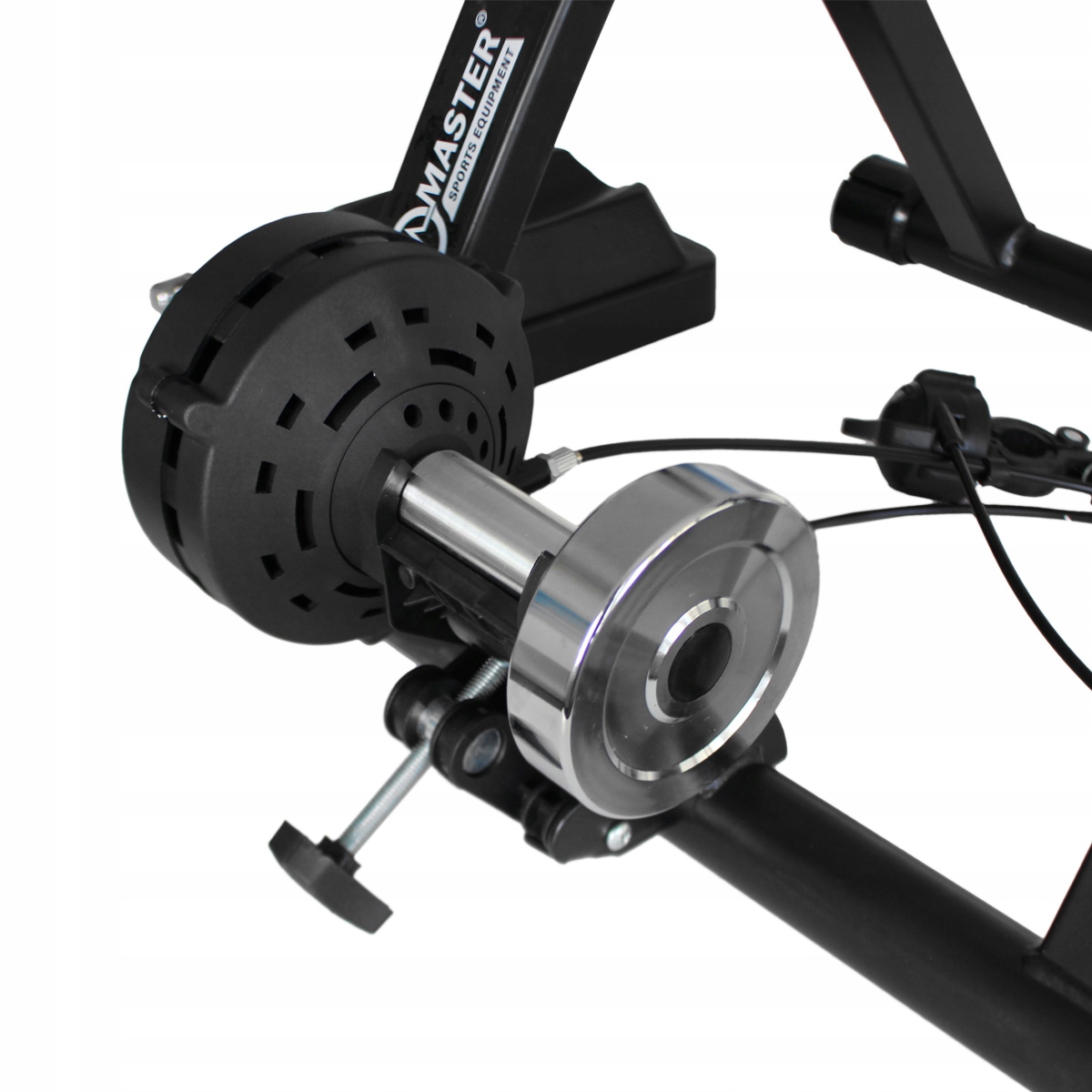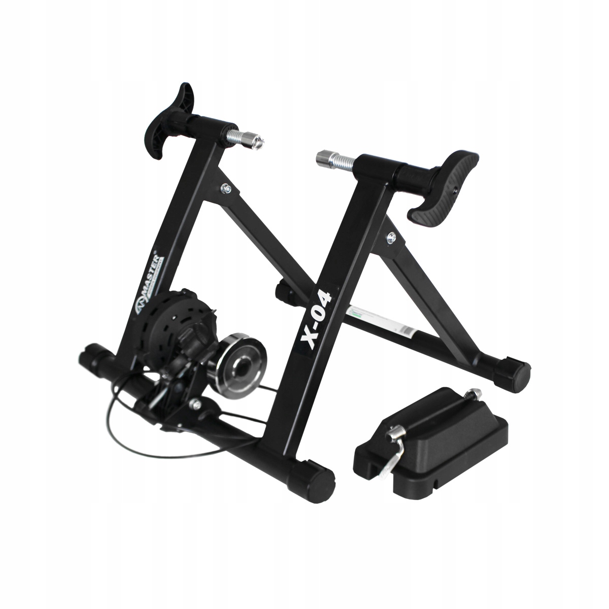 Професійний велотренажер MASTER X-04 призначений для домашніх тренувань на традиційному велосипеді. Головною перевагою моделі є якісна, металева конструкція з розкладним механізмом. Рівень навантаження регулюється за допомогою практичного механізму, який можна прикріпити до керма велосипеда. Ролик, по якому рухається заднє колесо, гальмується за допомогою магнітного опору, що гарантує плавну і тиху роботу тренажера під час тренування. Тренажер можна використовувати з велосипедами з колесами розміром від 24" до 28".Це ідеальне рішення для любителів велоспорту, які хочуть залишатися у формі навесні, навіть взимку.