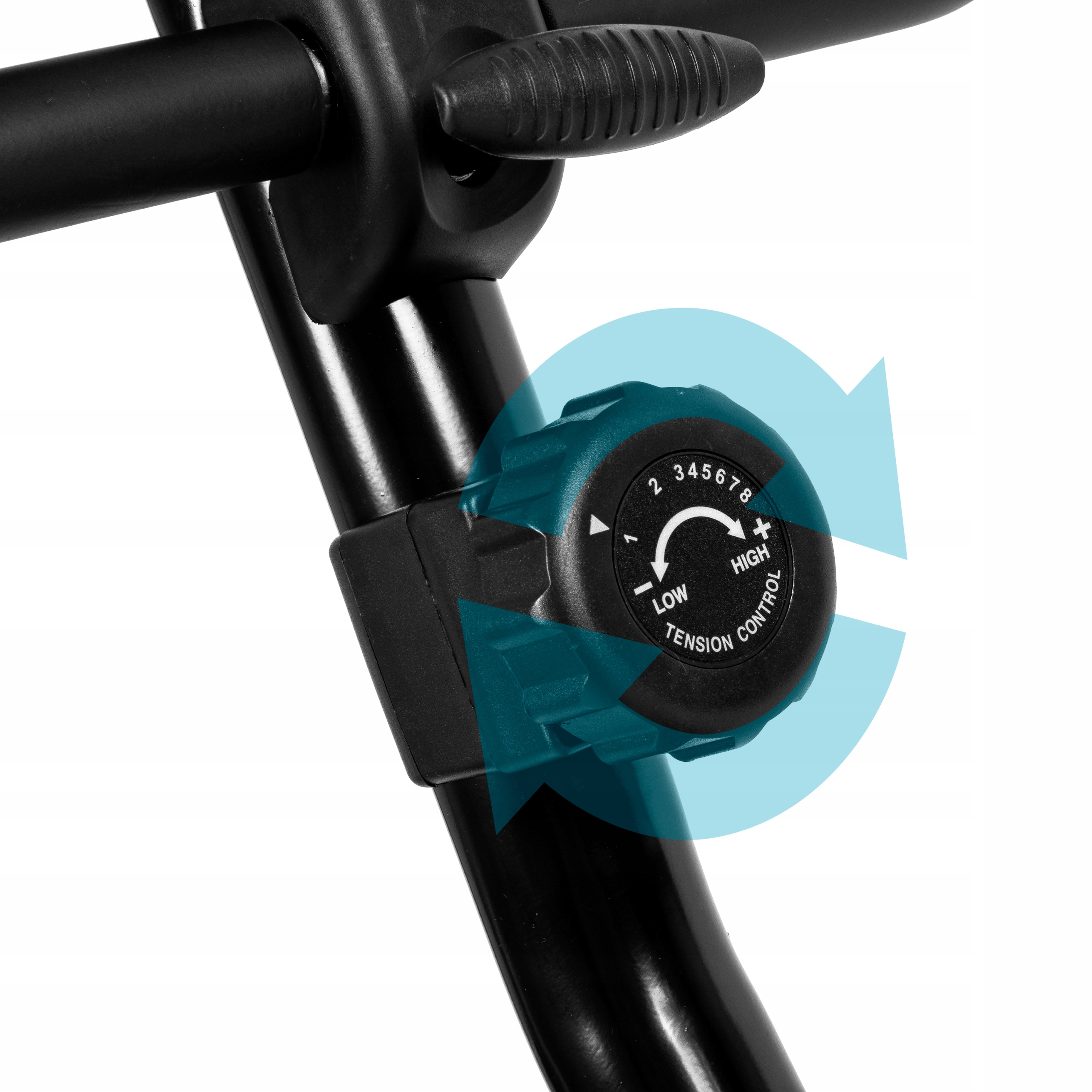 - Масивний маховик забезпечує не лише плавний рух, а й широкі можливості регулювання опору за допомогою ручки, яка знаходиться в межах досяжності тренажера.