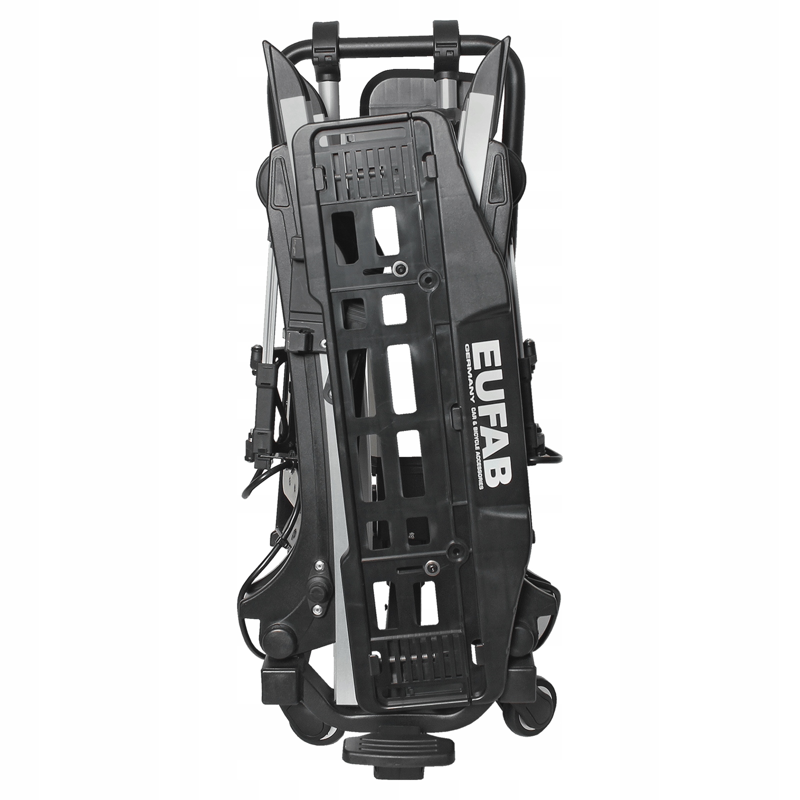 Вашу спину полегшує не лише електропривід: ролики знизу забезпечують зручне транспортування велопрокатного підйомника Eufab від місця зберігання до автомобіля. Велосипеди кріпляться до рами за допомогою стійких кронштейнів, а до передніх і задніх коліс — за допомогою пластикових ременів із замками.