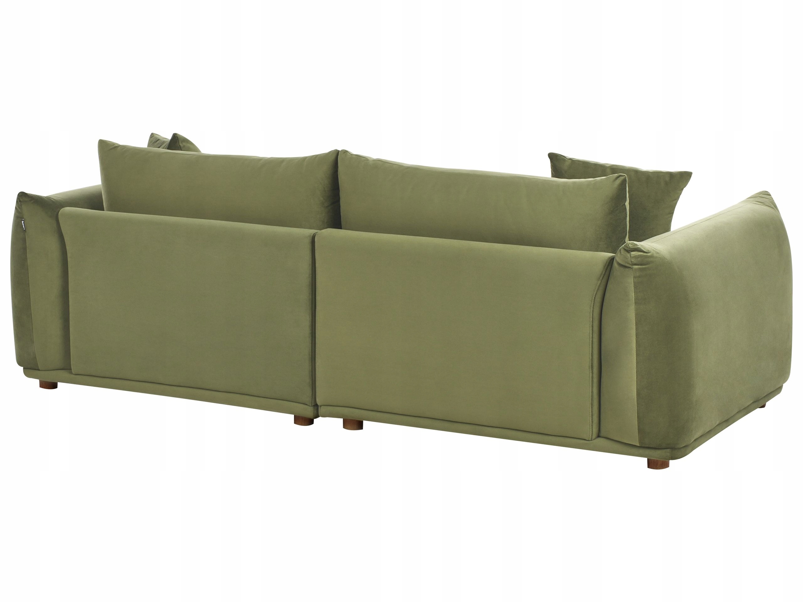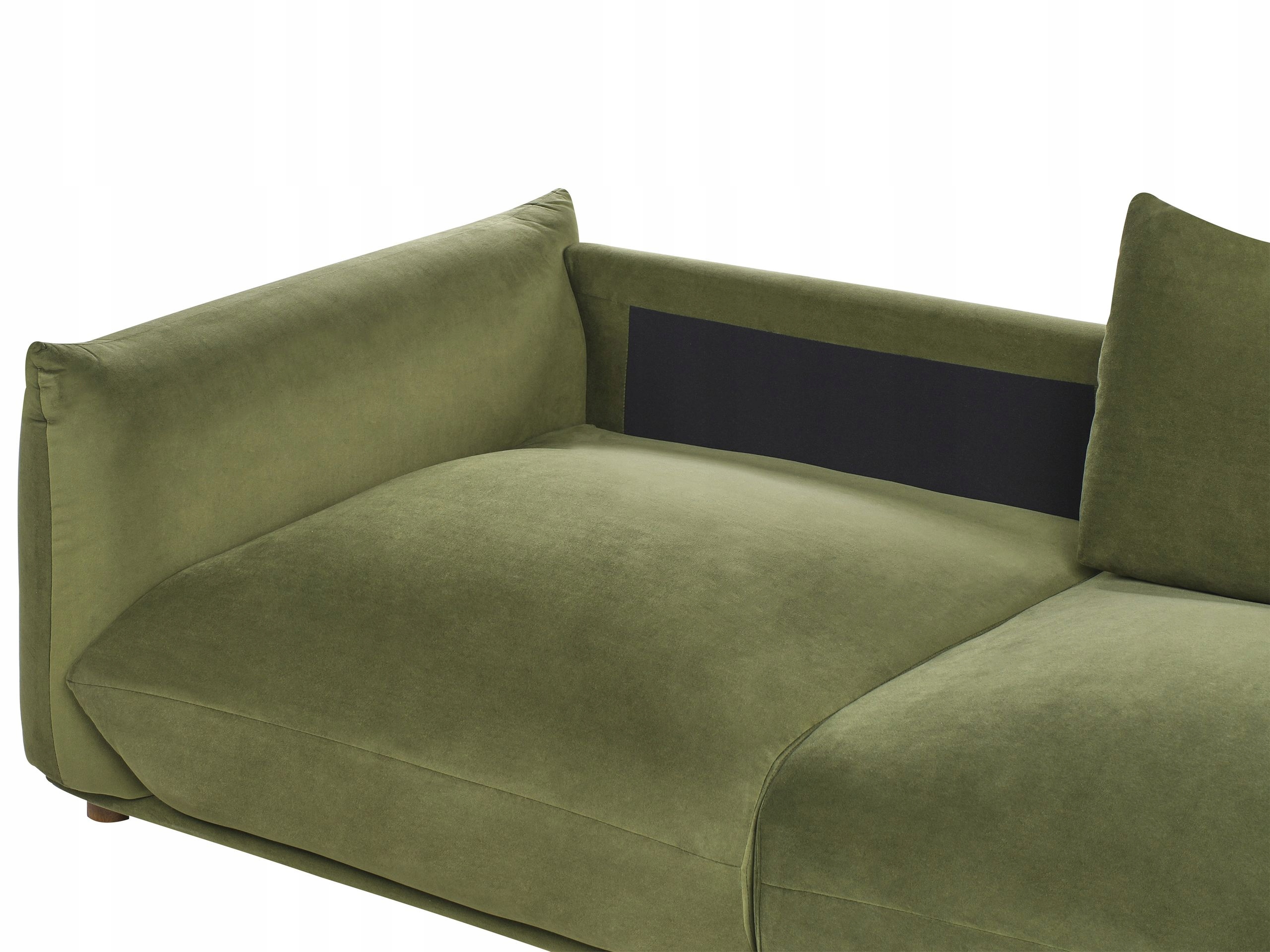 Введіть поєднання сучасного стилю та комфорту у свою вітальню. Закруглені лінії, оббиті з міцним і м'яким велюру в елегантному зеленому відтінку, ідеально підходить для відпочинку. Розташований на низьких стабільних гумових ногах, він запрошує відпочити в глибоких плюшевих сидіннях. Прикріплені декоративні подушки, виготовлені з одного і того ж матеріалу, створюють цілісний вигляд, одночасно покращуючи зручність використання.