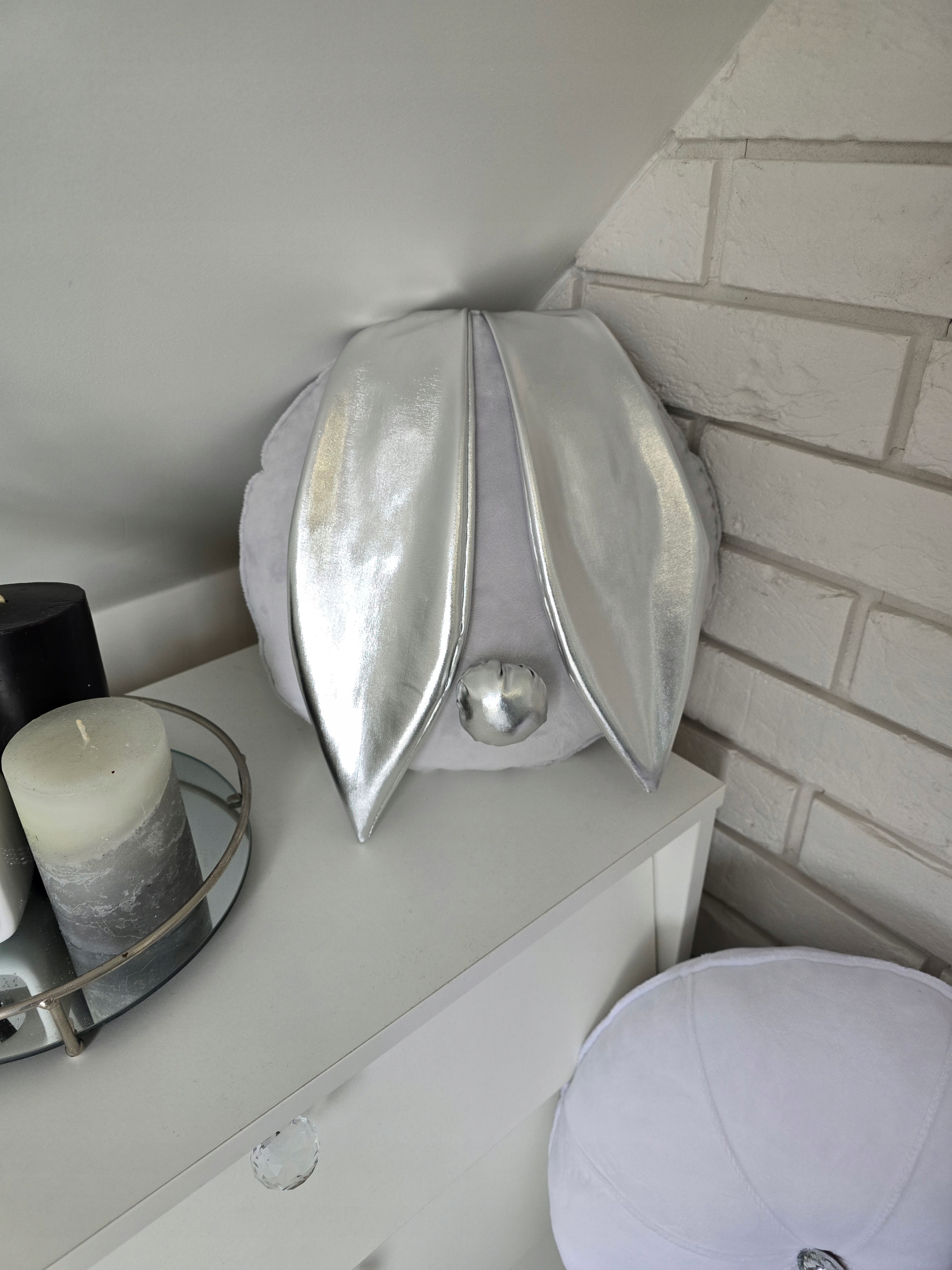 На аукціоні показано наволочку в голубах сірі, вуха та окуня, виготовляли з блискучого срібного матеріалу. Можливість модифікації кольорів, будь ласка, будь ласка, інформація у повідомленні після покупки.