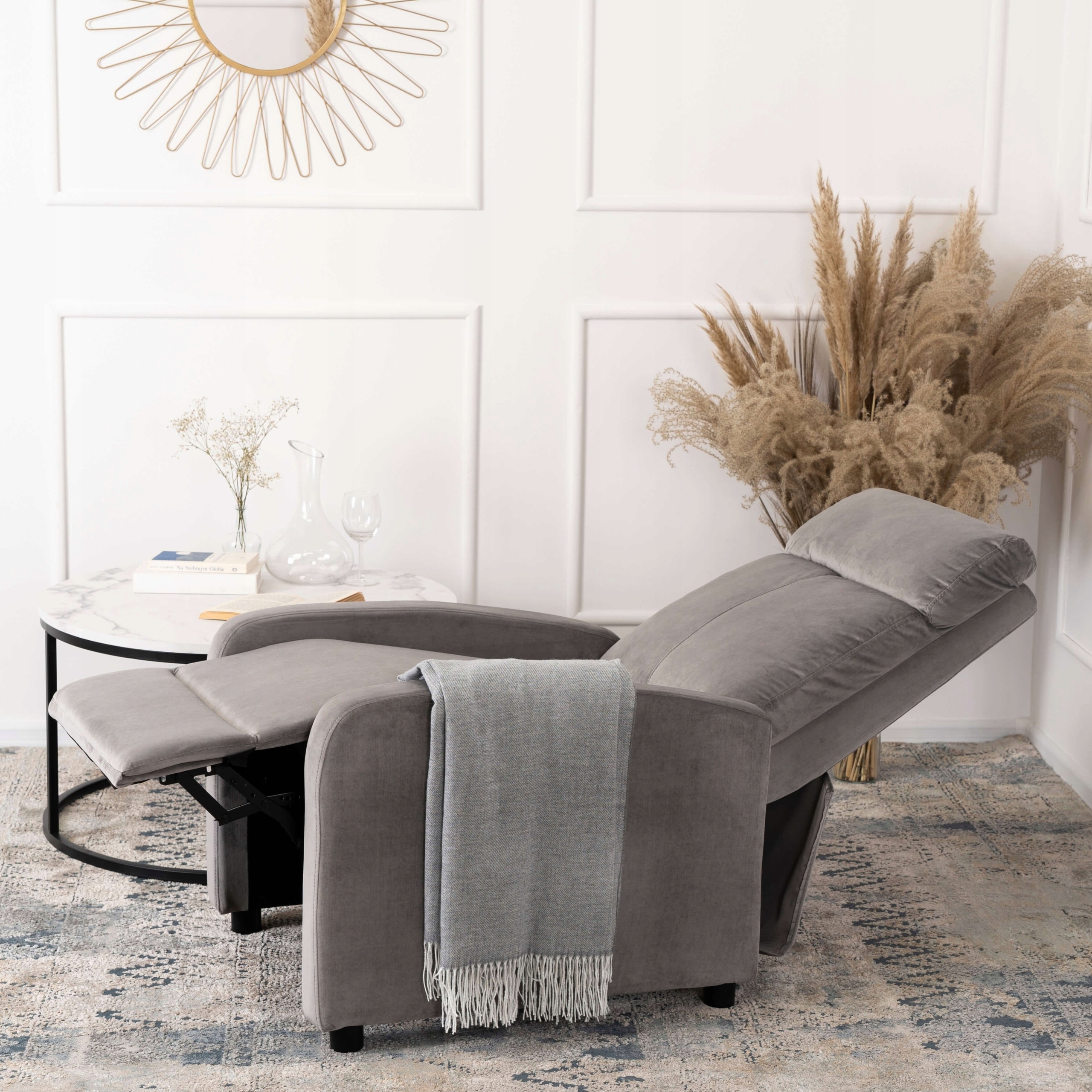 Велюрове крісло Loft Reclining Lounge Comfort For Sleeping Grey DANNY