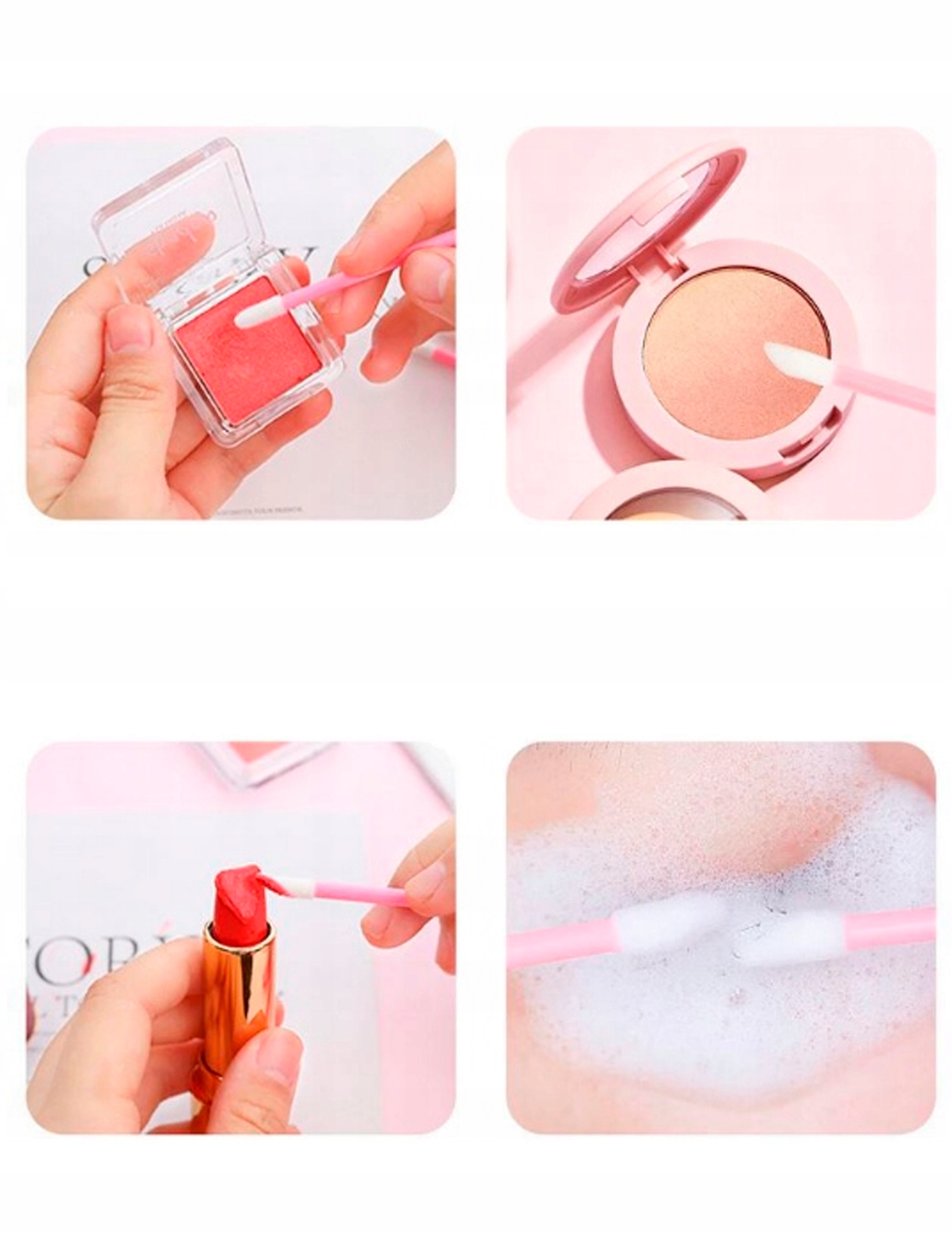➡️ Вони ідеально підходять для підсвічування губ і для нанесення препаратів, таких як кондиціонери, тіні або пігменти під час фарбування області навколо очей. Вони використовуються під час процедур нарощування вій.