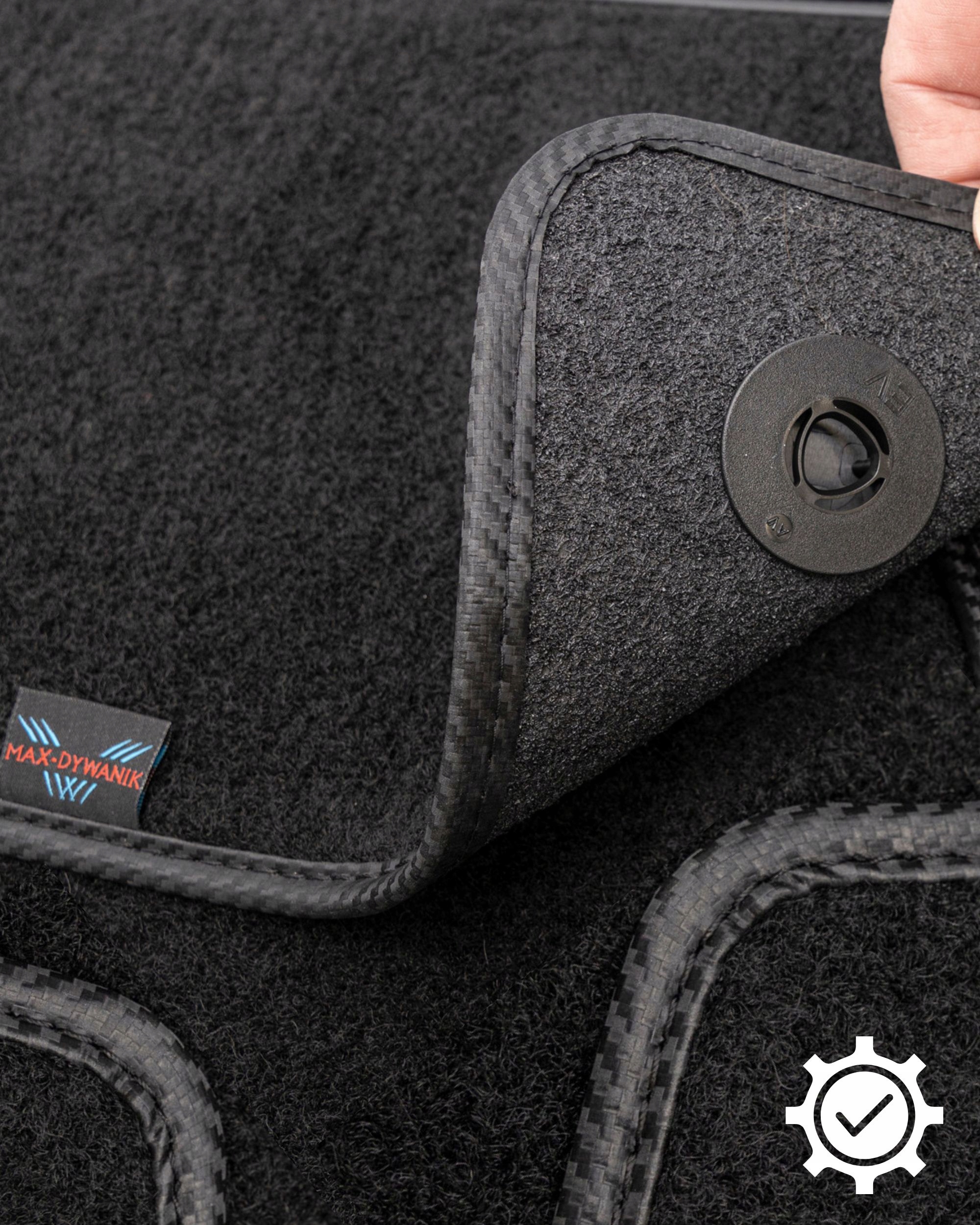 3D-етикетки були розміщені на спеціально розроблених кріпленнях Max-Dywanik, які, як і килими, стійкі до стирання та пошкоджень.Розкішну етикетку PERFORMANCEбуло виготовлено за допомогою цифрового друку, який був залитий смолою , що надає йому унікальний ефект. Все було закріплено на спеціальних затискачах Max-Dywanik, які назавжди прикріплюють етикетки до килимків, не допускаючи потрапляння води. Естетичне виконання виглядає надзвичайно привабливо.
