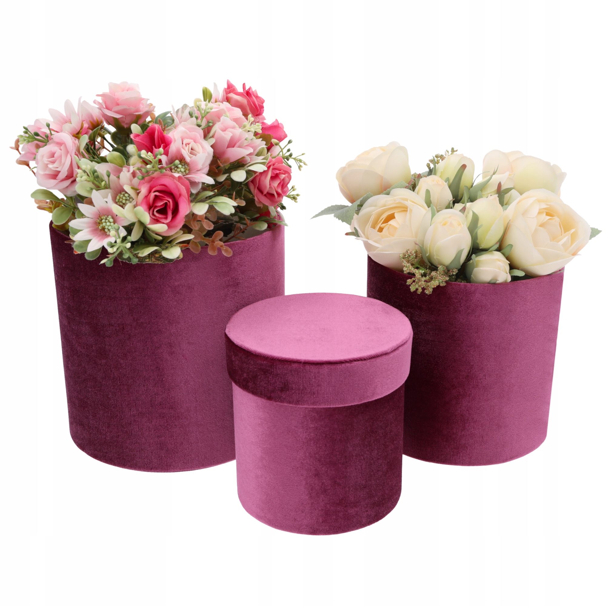 Велюрові квіткові коробки Квітка Подарунок з кришкою на набір 3 шт.