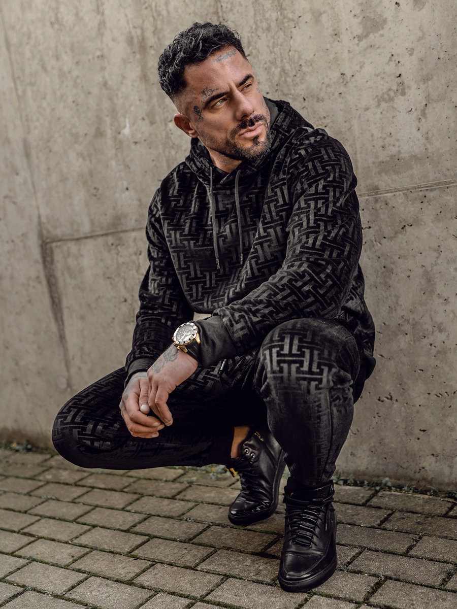 ВЕЛЮРОВИЙ СПОРТИВНИЙ КОСТЮМ З КАПЮШОНОМ, ЧОРНИЙ 3A81 DENLEY_S