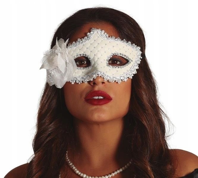 Біла стьобана венеціанська маска з квіткою