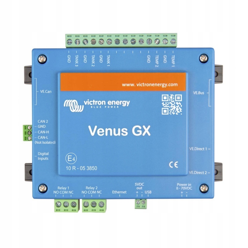 Пристрій Venus GX — це центр керування фотоелектричною системою, що забезпечує підключення кожного компонента або всієї системи до Інтернету за допомогою таких типів підключення, як. Кабельне з’єднання Ethernet, бездротове з’єднання WiFi або додатковий модем GSM через мережу мобільного зв’язку.