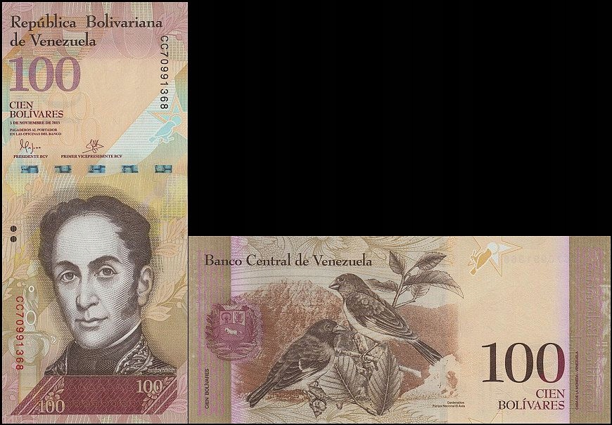 Венесуела, 100 Боліварес 5.11.2015 Вибір 93J