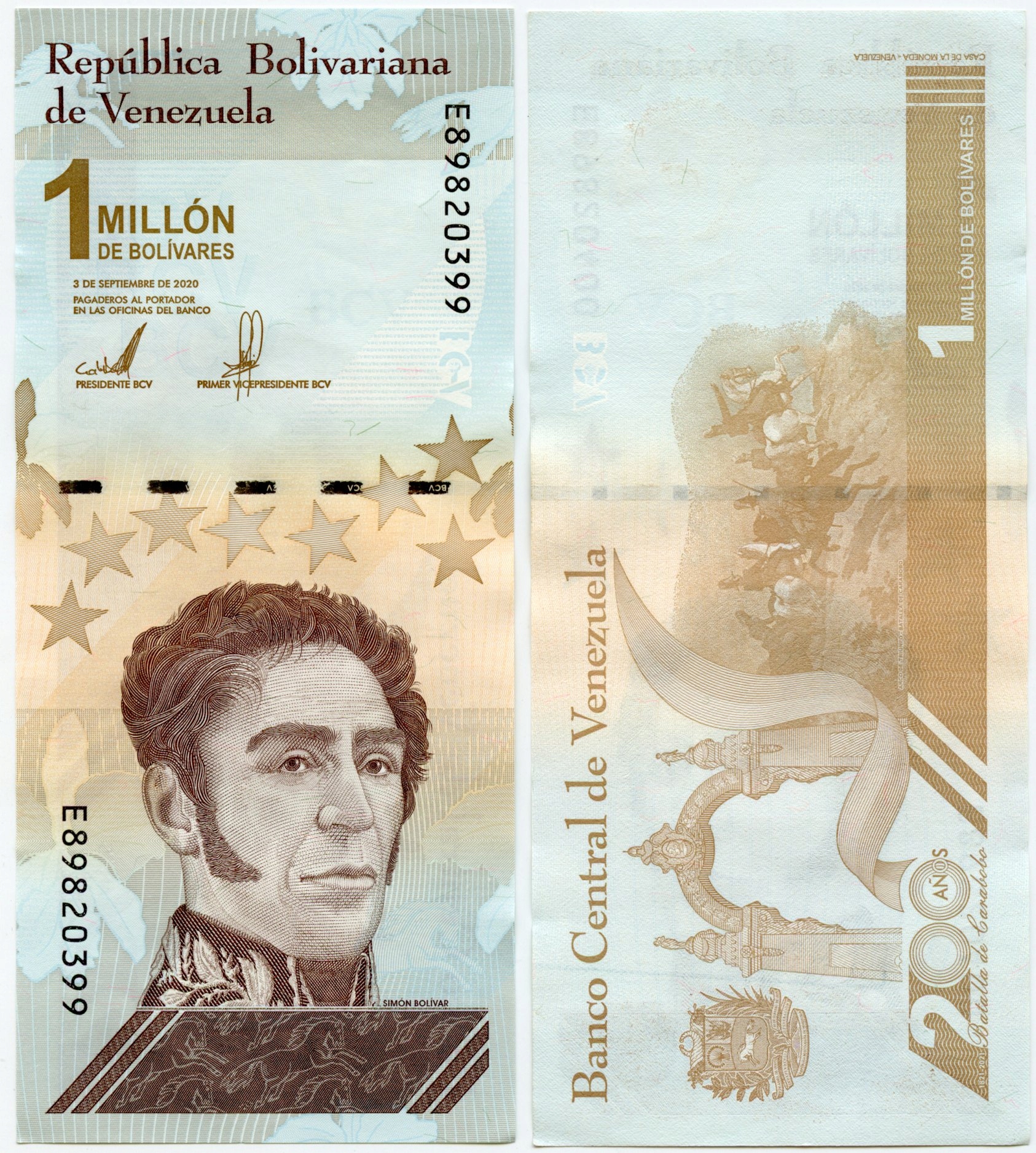 ВЕНЕСУЕЛА 1000000 BOLIVARES P-W 114a.1.2 2020 09/03 UNC Симон Болівар