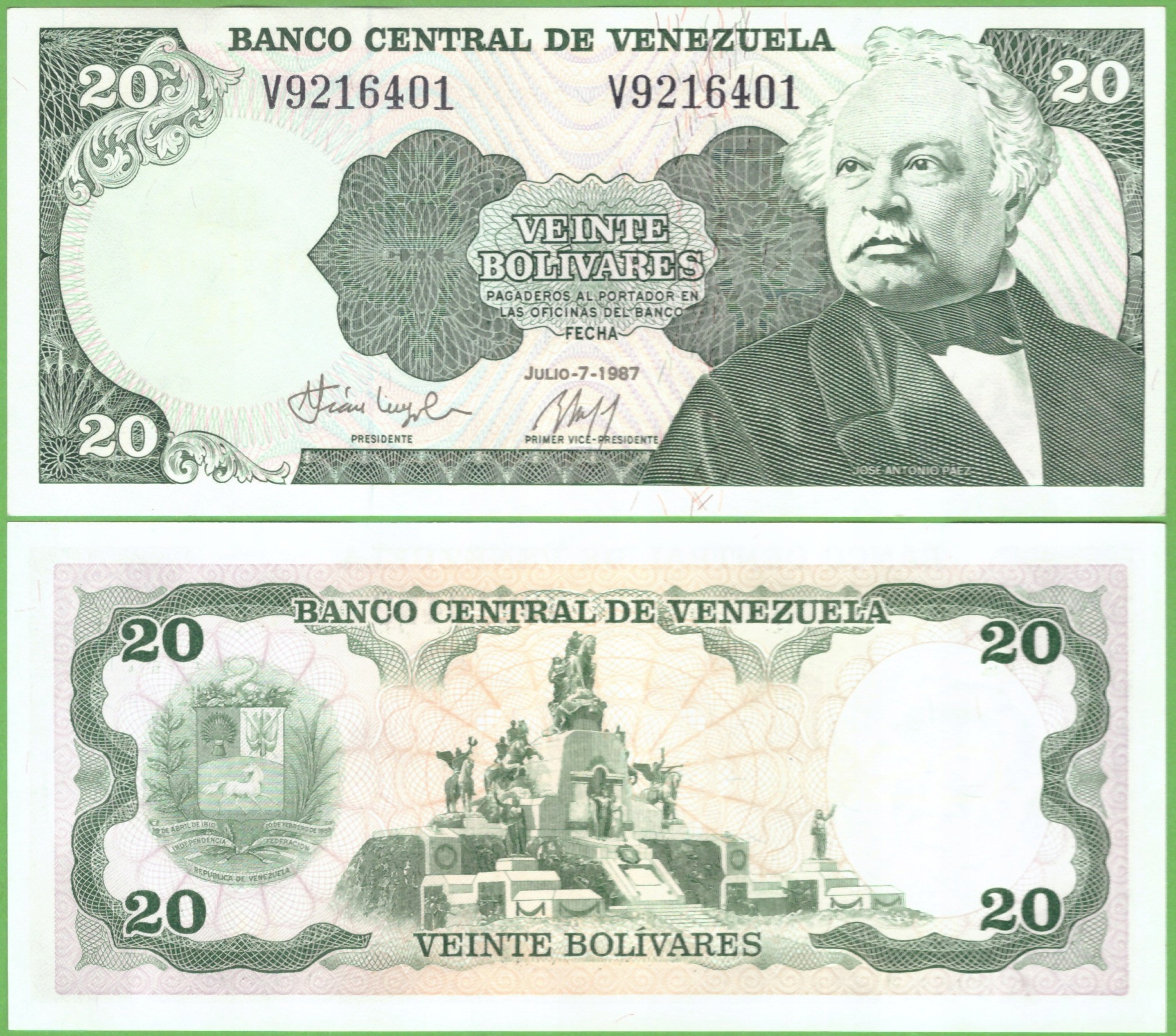 ВЕНЕСУЕЛА 20 БОЛІВАРЕС 1987 Р-64А UNC