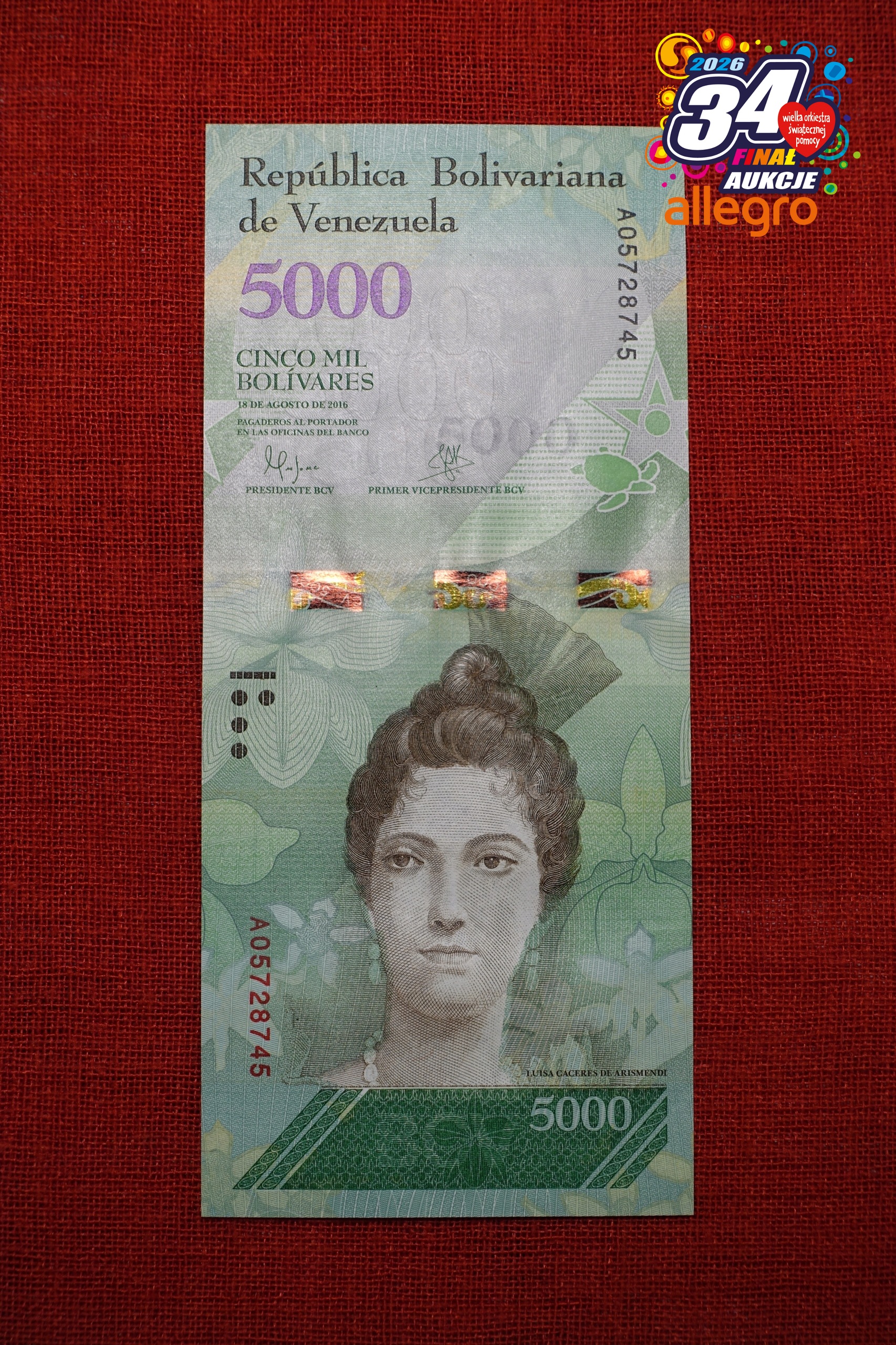 Продам банкноту VENEZUELA номіналом 5000 БОЛІВАРЕ випуску 18 серпня 2016 року кат. немає P-97a, серія A. Банкнота першого випуску, яку зараз важко отримати.