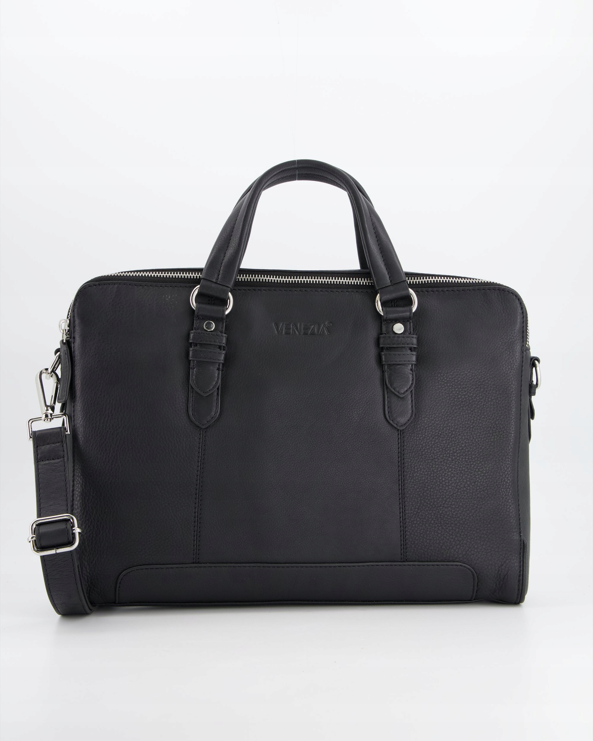 VENEZIA ЧОРНА СУМКА ДЛЯ НОУТБУКА В ДІЛОВОМУ СТИЛІ З НАТУРАЛЬНОЇ ШКІРИ