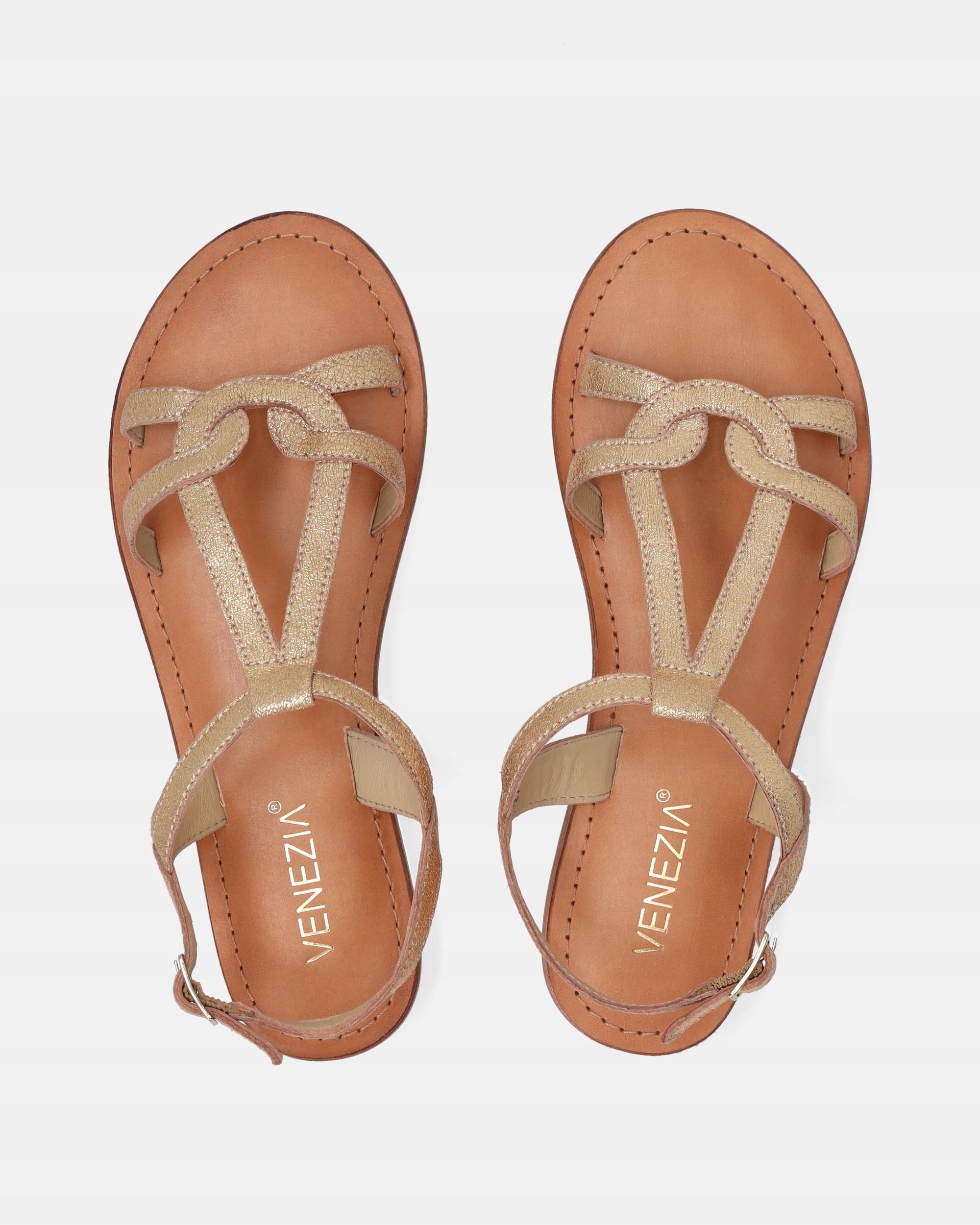 Венезія Жіночі босоніжки з золотистої шкіри розміром 36