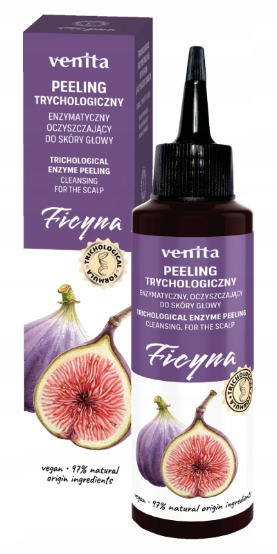 Після використання лущення ми рекомендуємо доглядати за шампунями та трихологічними скороченнями серії Venita. Фермент, отриманий на фіг., Відповідальний за лущення епідермісу без подразнення, згладжування та стимуляції оновлення клітин. 4 Це залишає шкіру зміцненою, здоровішою, еластичною і згладженою. і робить ваше волосся більш еластичним. "Рекомендується для догляду за всіма типами шкіри голови, особливо для чутливої шкіри, схильного до роздратування.