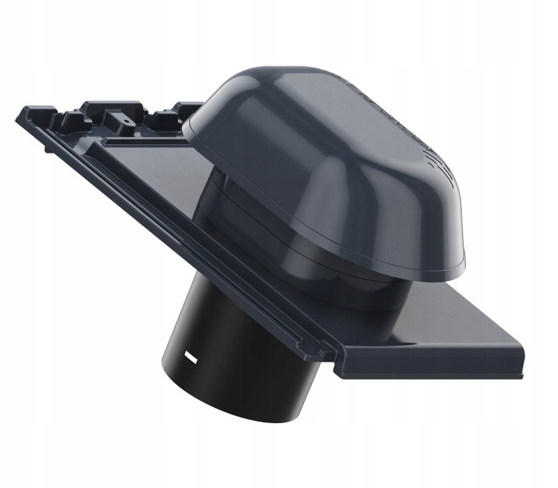 Алюмінієвий вентиляційний отвір - оснащений конденсатовідводом і решіткою, що запобігає потраплянню сторонніх предметів і тварин у вентиляційний канал. Завдяки основі, що імітує оригінальну черепицю, і використанню системної витяжної труби монтаж виробу надзвичайно простий і дозволяє швидко підключити камін до систем вентиляції/вентиляції за допомогою системних з’єднувальних труб. Завдяки вентиляції установки це дозволяє вирівняти тиск повітря в трубах і видалити каналізаційні гази