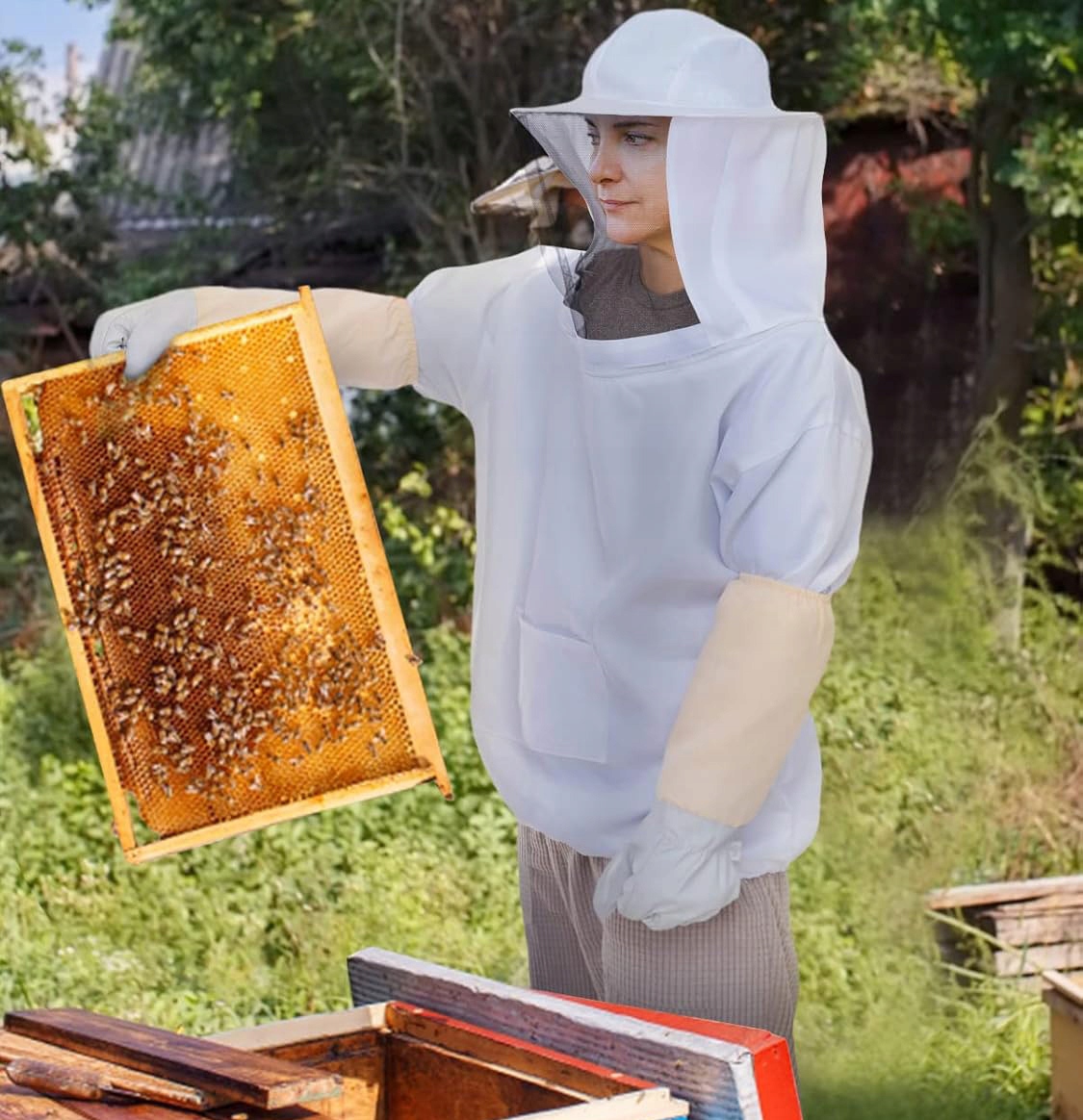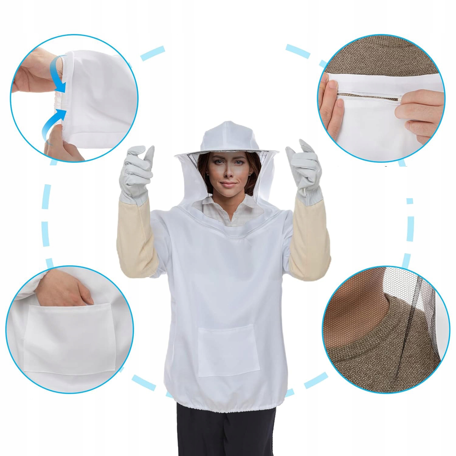 🐝🐝【 м'яка тканина】: Захисний одяг для бджільницького робочого одягу виготовлений з високоякісної товстої тканини з товстою, яка може ефективно блокувати бджоли. Він легкий і дихаючий, щоб забезпечити холод і зручність під час літньої роботи. Рукавички виготовлені з високоякісної тканини з шкіри, а рукава виготовлені з бавовняної тканини високої щільності, безпечнішої, міцнішої та м’якшої.