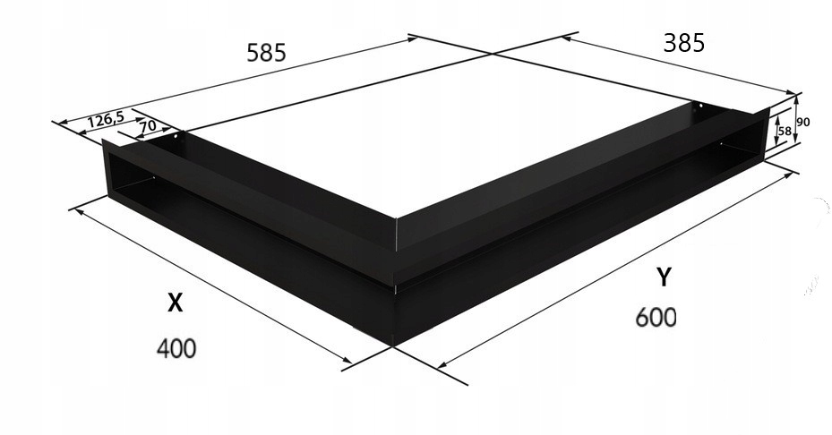 - Камін внизу - кутовий камін LUFT решітка ПРАВА чорна 40x60x9см - 1шт
