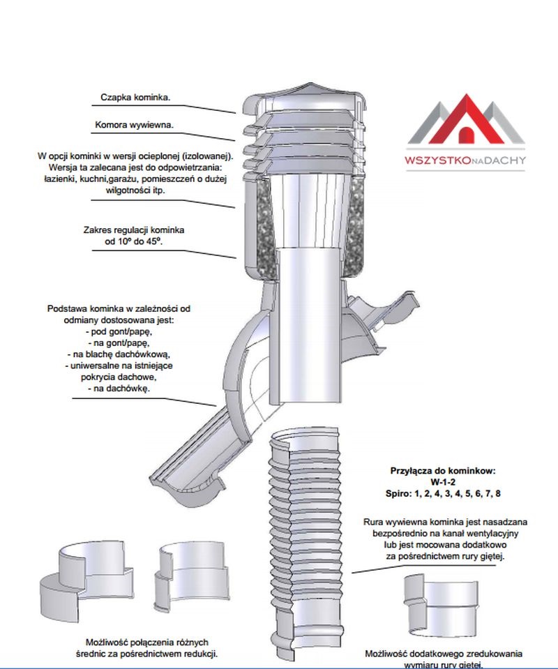 Повний вентиляційний димохід з плоскою основою з бутиловою прокладкою для наявних плоских покриттів. Утеплений варіант, який запобігає конденсації водяної пари у вентиляційному каналі, найчастіше помітному взимку.