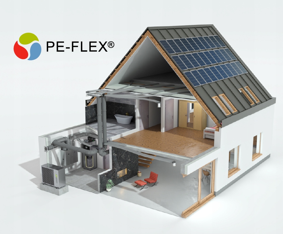 Повітроводи є дуже гнучкими, тож ви можете вільно формувати їх хід і згинати до дуже малих радіусів, що забезпечує дуже універсальний розподіл вентиляційної системи в будівлі мінімально інвазивним способом без необхідності використання додаткових арматура. Двошарова конструкція труби забезпечує її високу міцність і дозволяє, наприклад, заливати конструкційним бетоном або закладати канали в шарі утеплювача стелі. Закриті повітряні порожнечі навколо труби значно пригнічують шум, спричинений потоком повітря всередині, і забезпечують теплоізоляцію. Вентиляційні канали PE-FLEX® можуть працювати з більшістю рекуператорів, доступних на ринку.