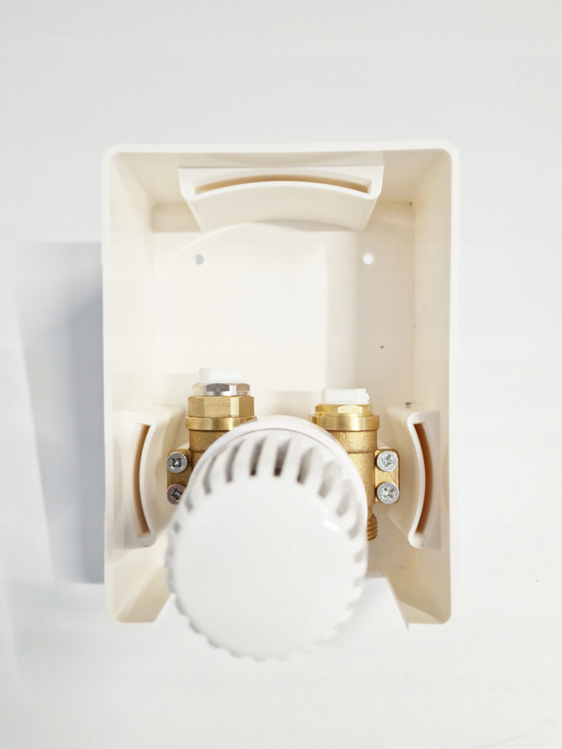 обмежувач касети для опалення підлоги, розміщений у коробці з пластиковою фронтом, встановленою на поверненні петлі опалення підлоги. Завдяки великому потоку він гарантує належну роботу петлі до 120 м. Завдяки цьому ви можете легко встановити температуру в приміщенні. Температура навколишнього середовища