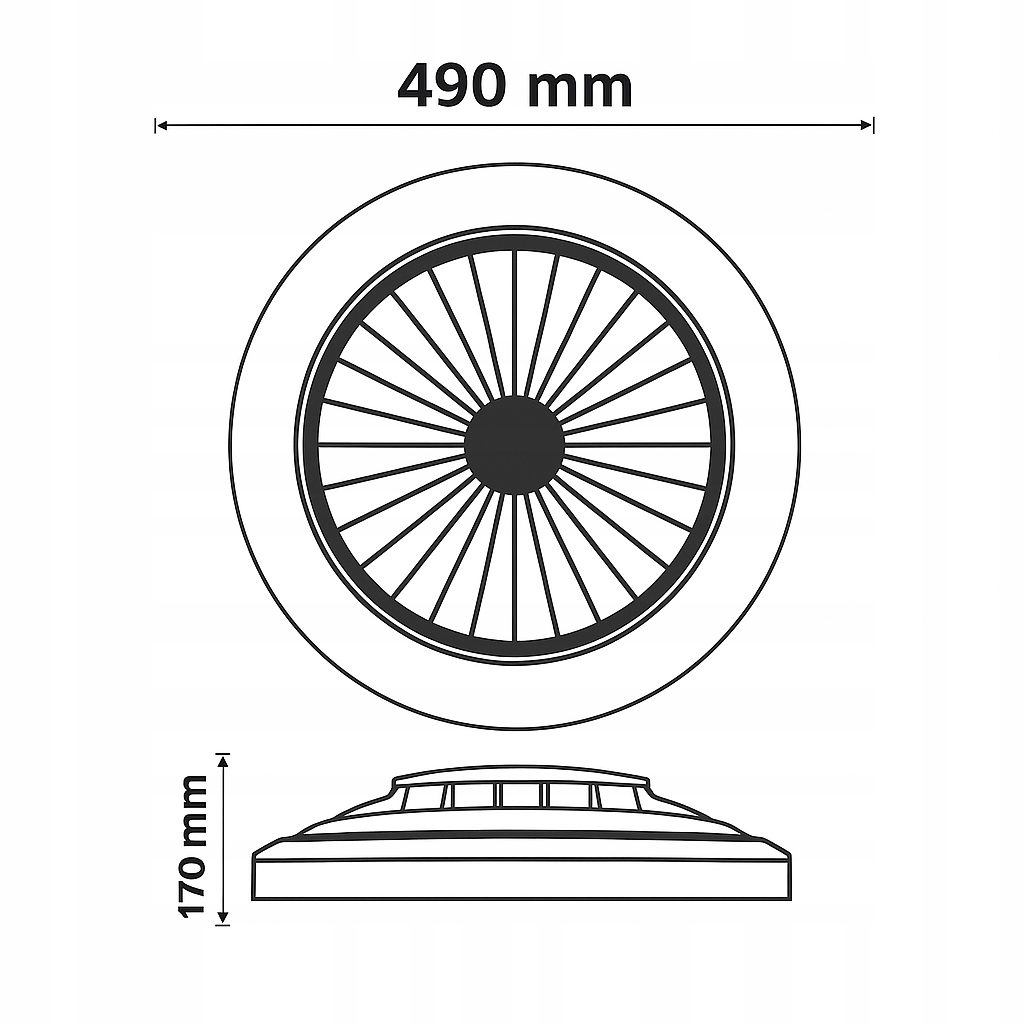 Крім того, стеля має міцний корпус, а це означає, що він довговічний і буде служити тривалий час. Це ідеальне рішення для спекотної погоди, оскільки він поєднує функцію освітлення та вентиляції. Пристрій відіграє роль стелі, оснащеної SMD світлодіодом 2835 з ємністю 36 Вт з можливістю регулювання кольору світла (білого). Крім того, всередині корпусу є стельова вентилятор потужністю 15 Вт Пристрій керується зручним дистанційним керуванням або нанесенням.