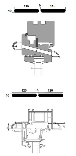 Другий малюнок показує монтаж вентиляційного отвору у вікні ПВХ. Також показано поперечний переріз наскрізних отворів разом із його діаметром, довжиною та відстанню між отворами.