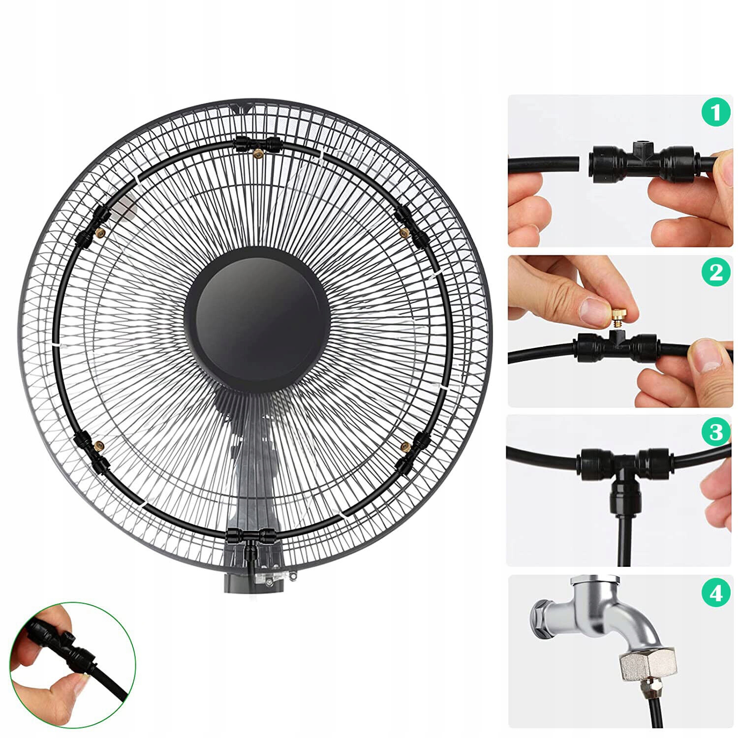 - ✅Кільце розпилювача постачається попередньо зібраним і може бути легко прикріплено до вентилятора за допомогою включені кабельні стяжки, які забезпечують миттєве охолодження.