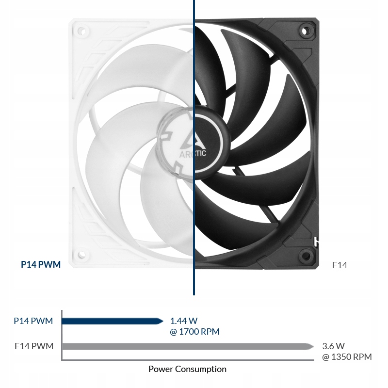 Під час розробки нового P14 PWM особлива увага приділялася концентрованому потоку повітря, а отже, високому статичному тиску. Вентилятор гарантує надзвичайно ефективне охолодження навіть при підвищеному опорі повітря. Тому P14 PWM особливо підходить для використання з радіаторами.