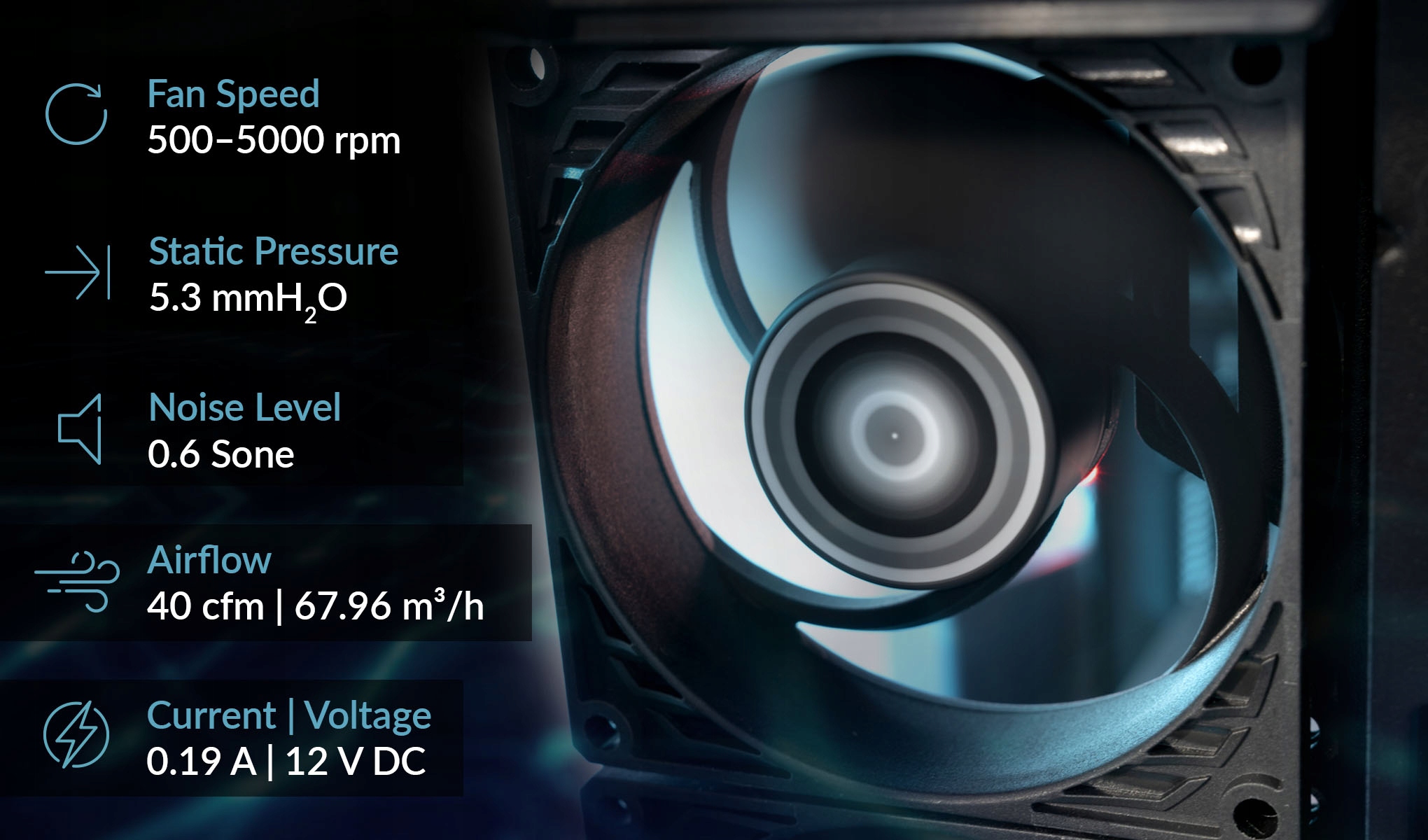 P8 Max — це ефективний вентилятор зі швидкістю обертання від 500 до 5000 об/хв. Вентилятор забезпечує статичний тиск 5,3 мм H2O і створює повітряний потік до 40 куб. Він забезпечує точне керування швидкістю вентилятора за допомогою широтно-імпульсної модуляції (ШІМ) і надзвичайно ефективний при 0,19 А. P8 Max ідеально підходить для серверних стійок 2U, яким часто потрібен великий потік повітря для ефективного розсіювання тепла. Крім того, він має режим 0 дБ, що забезпечує тиху роботу в режимі очікування.