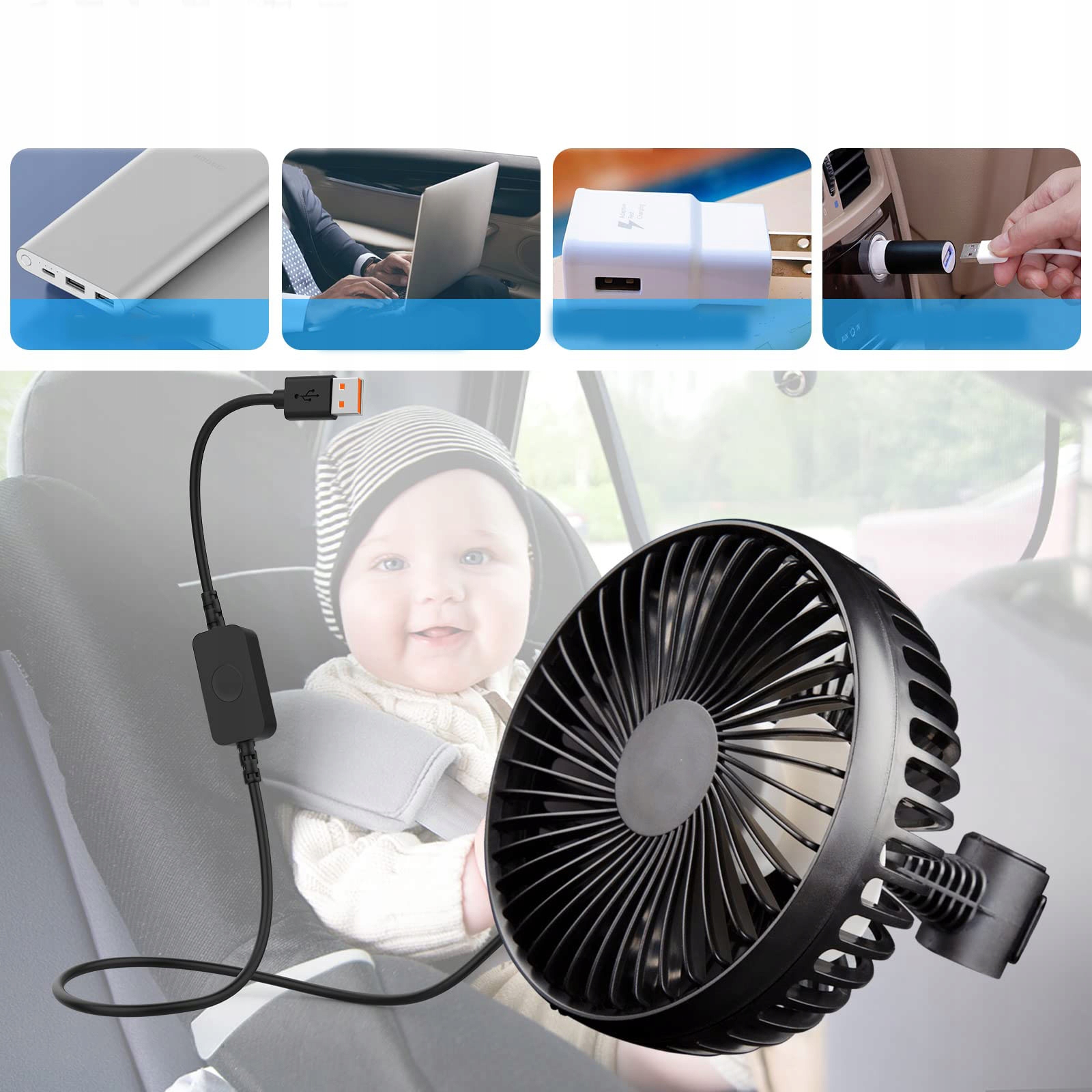 Цей вентилятор підходить не лише для використання в автомобілі, але й для використання вдома або в офісі. Практичний USB -інтерфейс дозволяє легко підключити вентилятор до Powerbanks, ноутбуків або інших пристроїв з USB -портом. Вентилятор легкий і портативний, що робить його ідеальним для різних середовищ.