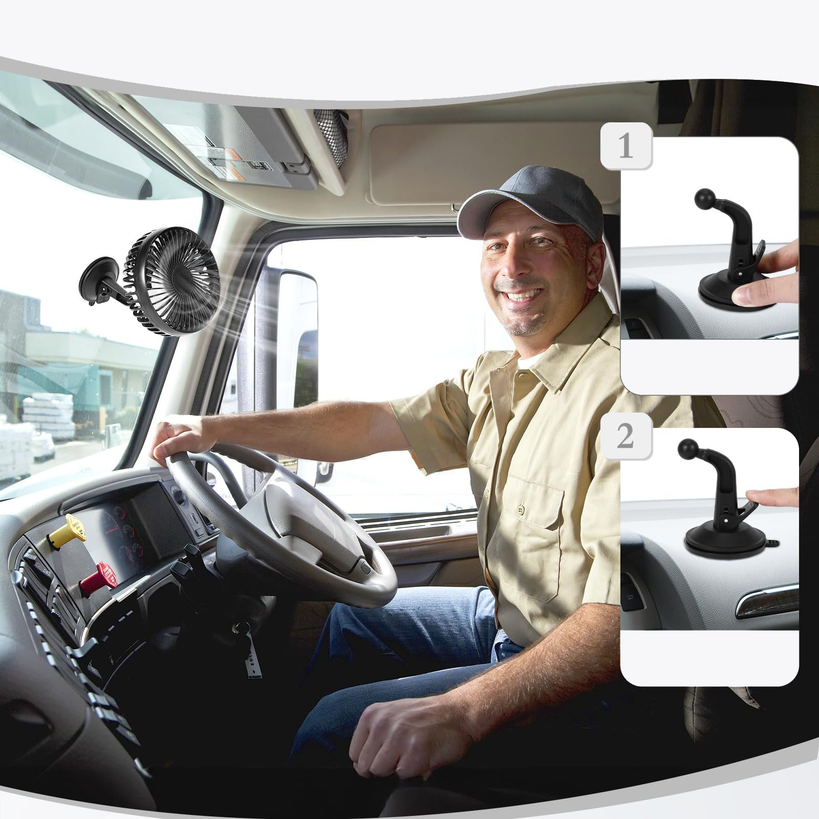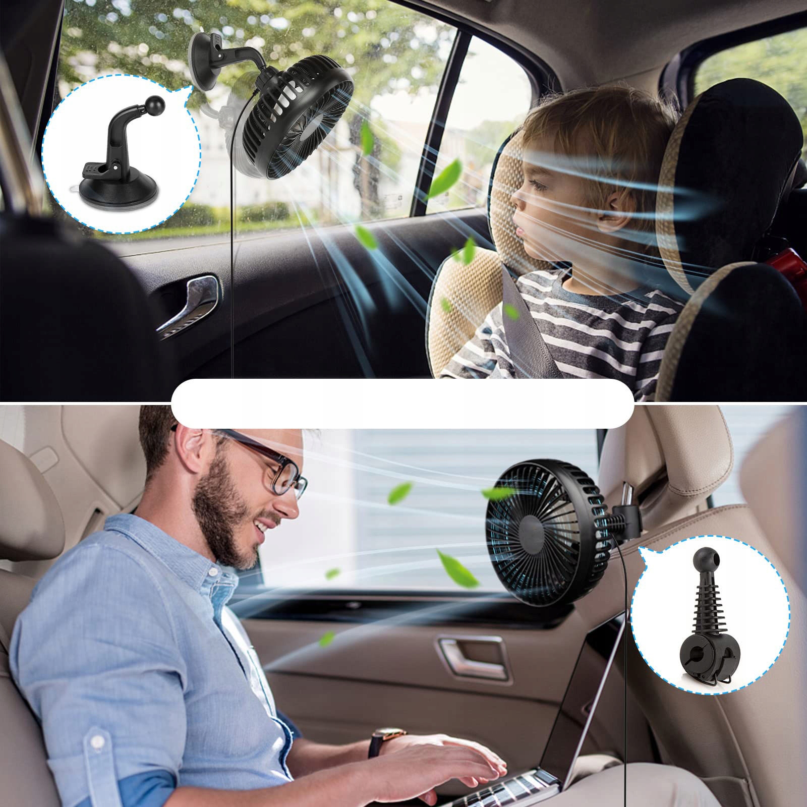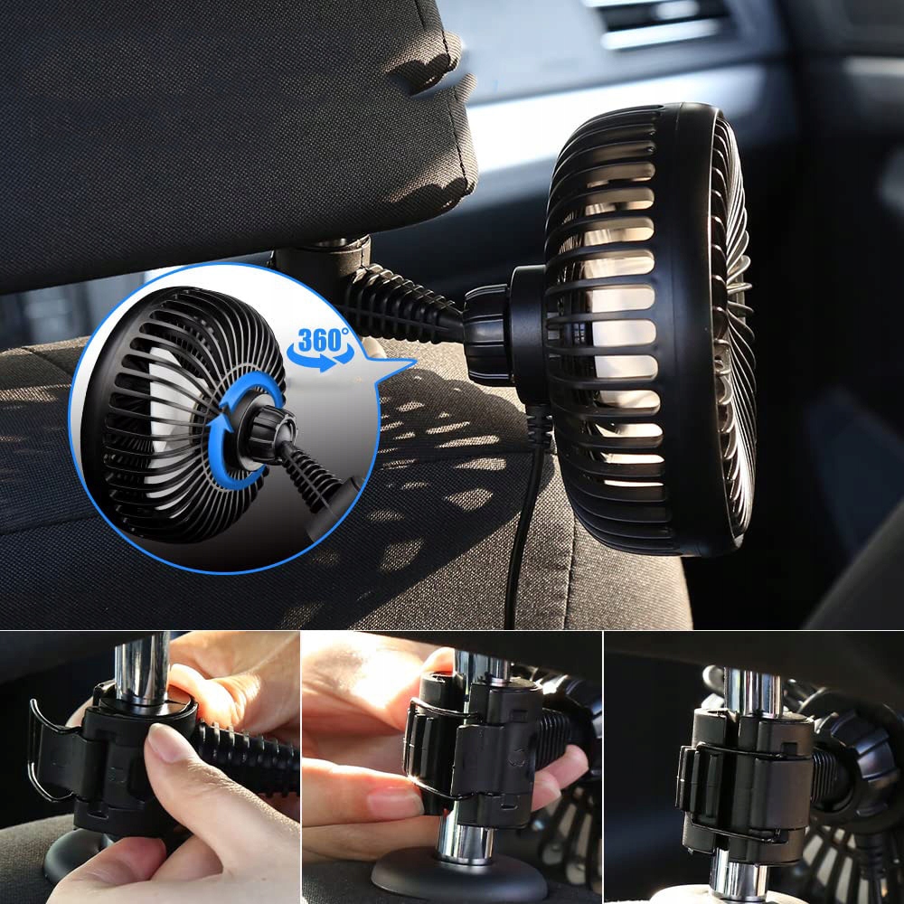 Встановлення цього вентилятора проста і нехитра. Завдяки практичній конструкції присосної чашки ви можете легко прикріпити вентилятор до лобового скла або приладової панелі. Альтернативно, його також можна зручно прикріпити до автомобіля за допомогою ручки підголівника, що дозволяє гнучко використовувати.