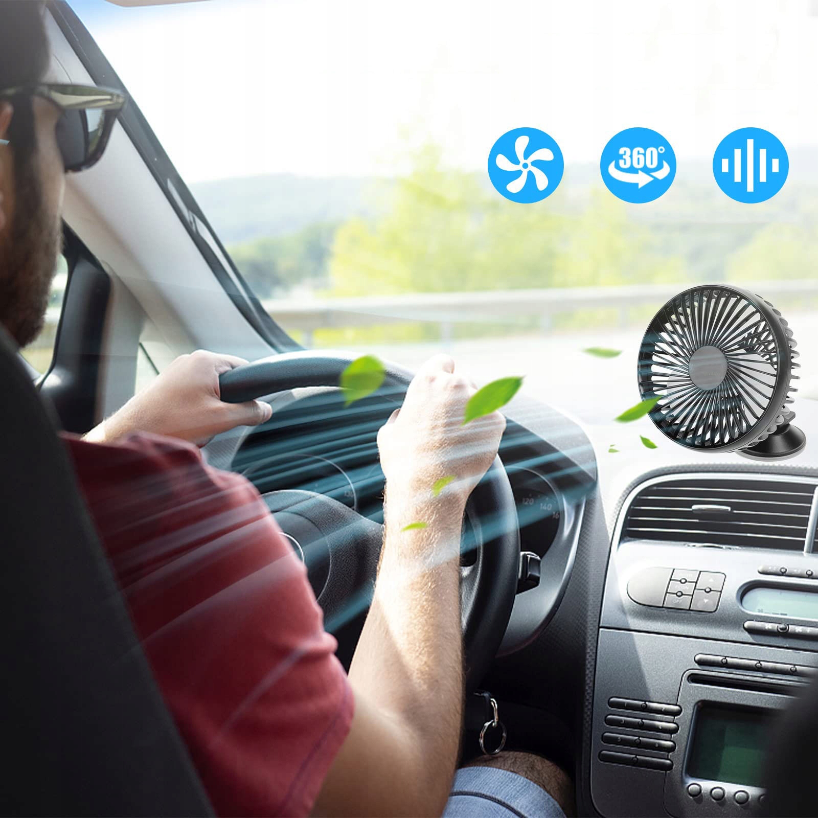 Цей вентилятор автомобіля забезпечує ефективну вентиляцію та покращує циркуляцію повітря в автомобілі для усунення неприємних запахів. Він може підірвати гаряче повітря з транспортного засобу і забезпечити приємне охолодження в інтер’єрі в спекотні літні дні.