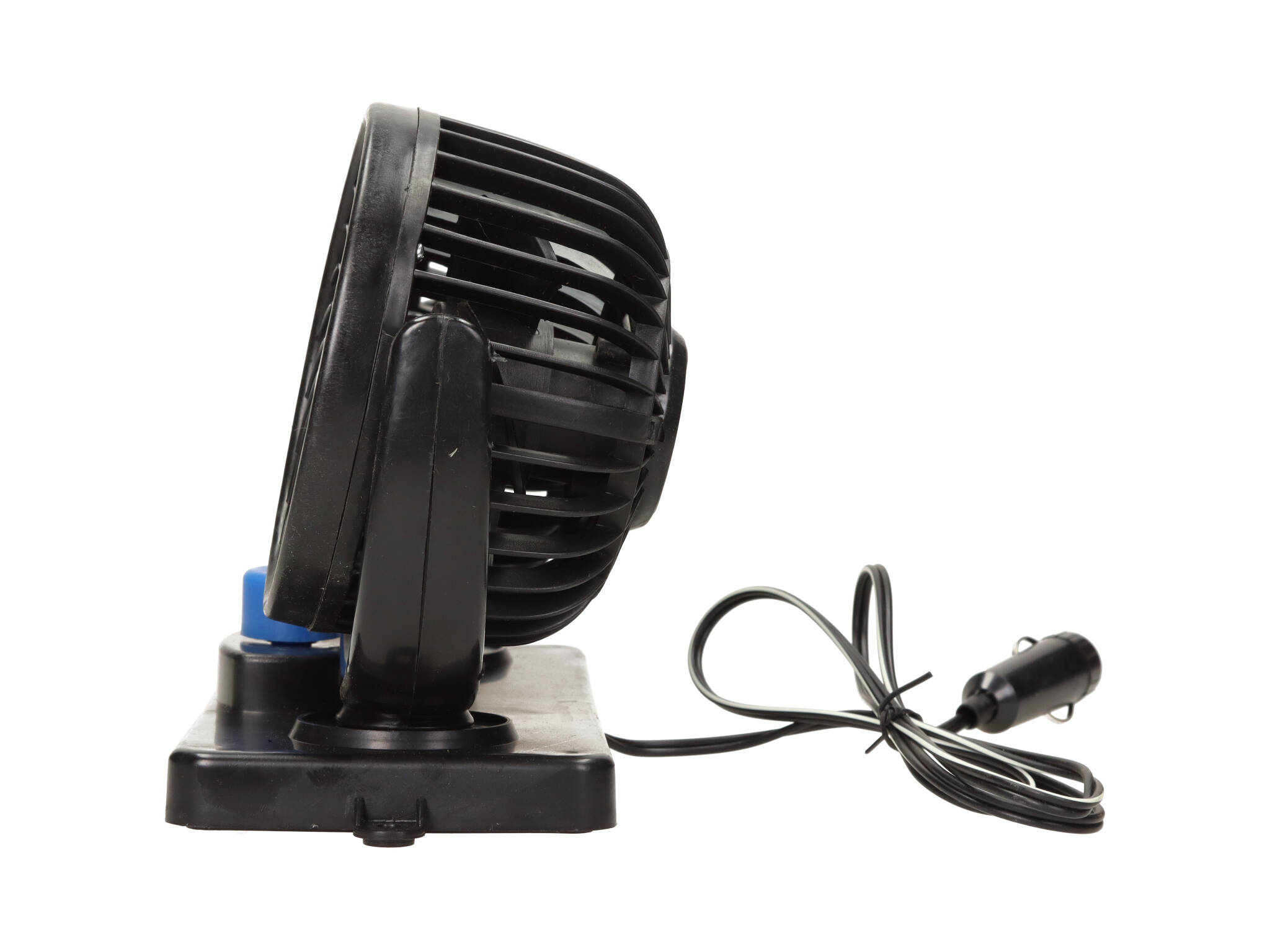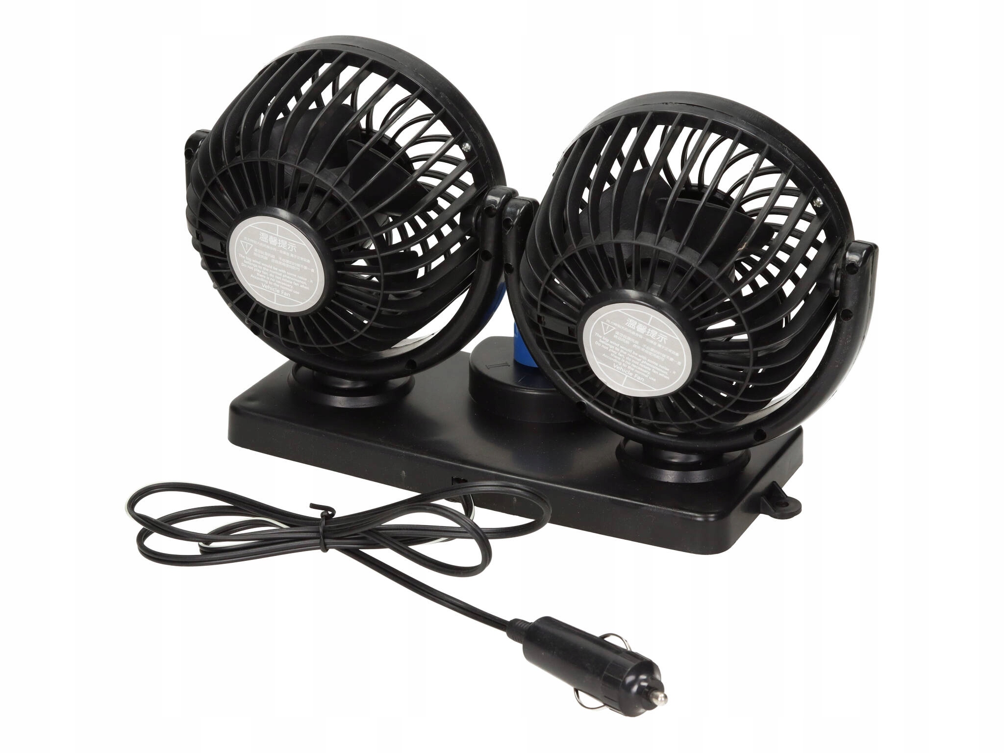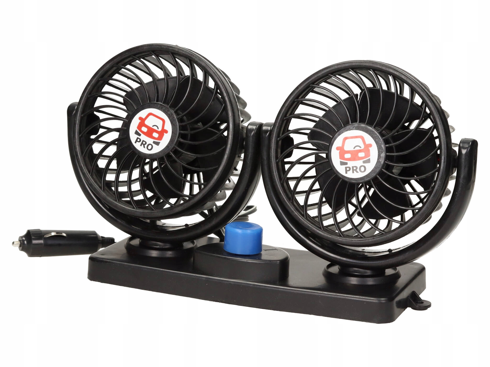 Це відмінний прилад, який дозволить охолодити салон автомобіля в спекотні дні. Він складався з двох 5-дюймових вентиляторів, які можна регулювати як по вертикалі, так і по горизонталі, дозволяючи нахил і обертання майже в будь-якому куті. На ніжці є ручки, що дозволяють вимикати і двоступеневе регулювання швидкості вентилятора.