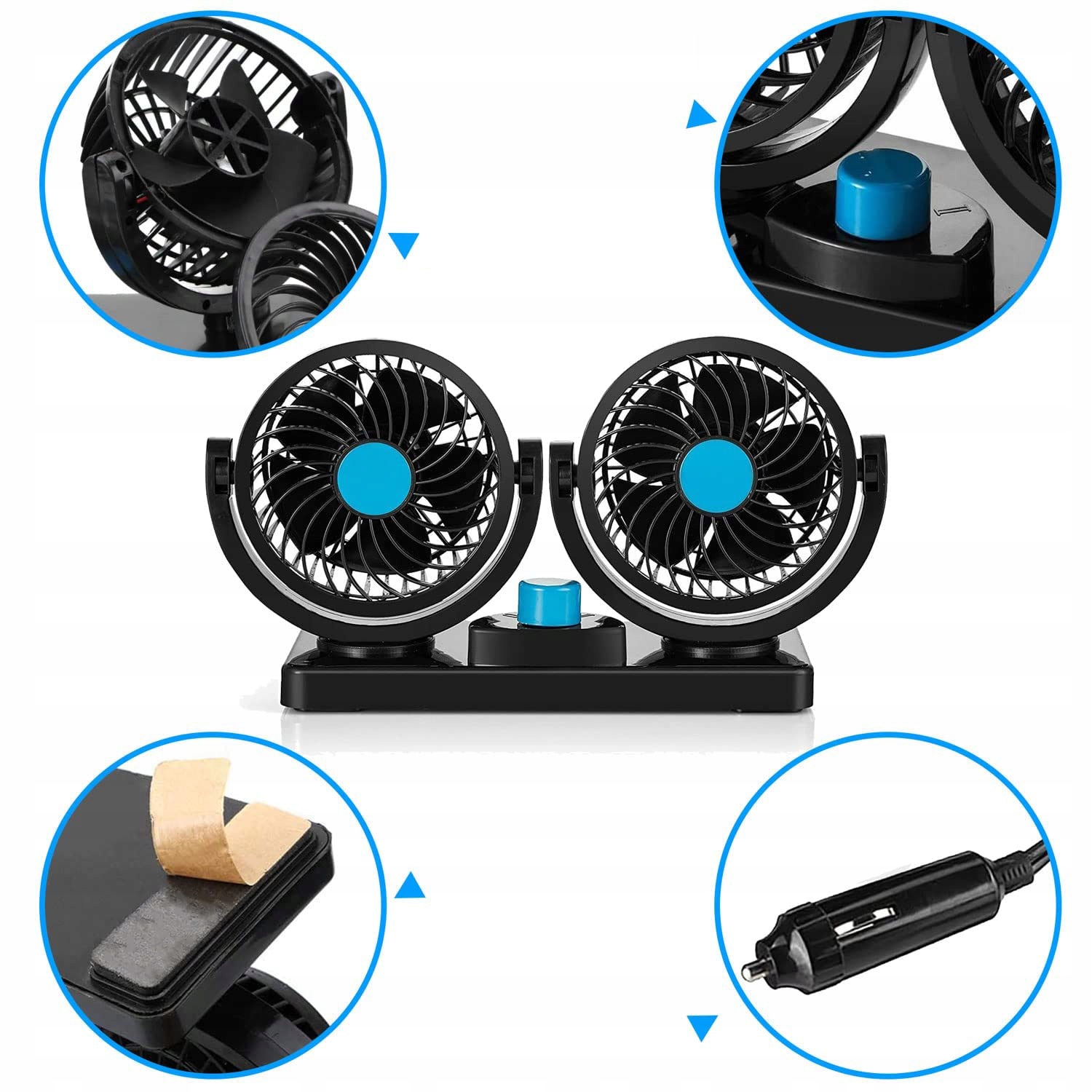 АВТОМОБІЛЬНИЙ ВЕНТИЛЯТОР 360° ВЕНТИЛЯТОР ДВІЙНОГО РЕГУЛЮВАННЯ ТИХА КАПІТ 12В
