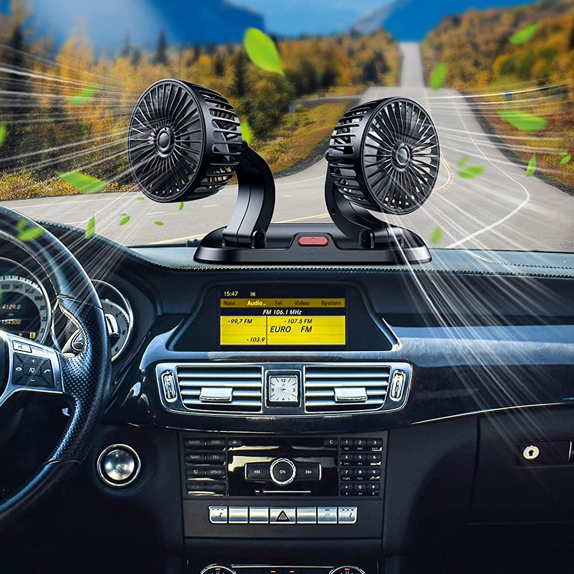 🍃🍃【 Матеріал високої якості】 Вентилятор автомобіля з подвійною головкою виготовлений з високоякісного матеріалу, який нелегко пошкодити, стійкий до високих температур та низьких температур, стійких до зносу та міцного і має тривалий термін експлуатації.