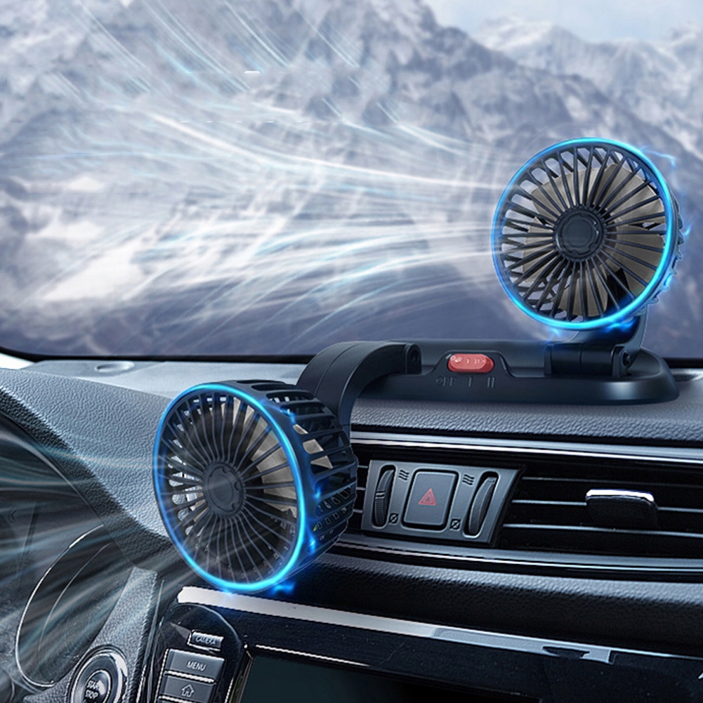 🍃🍃【 Дизайн голови з подвійним вентилятором】 Цей вентилятор автомобіля має обертову конструкцію головки вентиляторів, яка розширює діапазон подачі повітря вентилятора, швидкість рівномірна і стабільна, щоб ви могли насолоджуватися свіжим вітром.