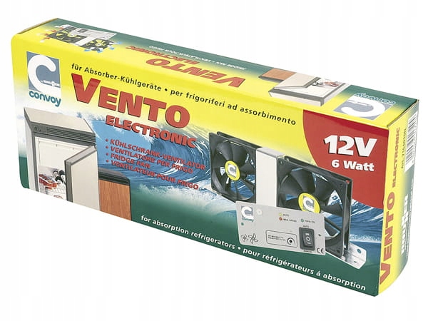 Електричний вентилятор Brunner Vento 12V. Призначений для установки за холодильником. Завдяки вентилятору підвищується ефективність роботи абсорбційного холодильника. Вентилятор використовується в караванах і кемперах.