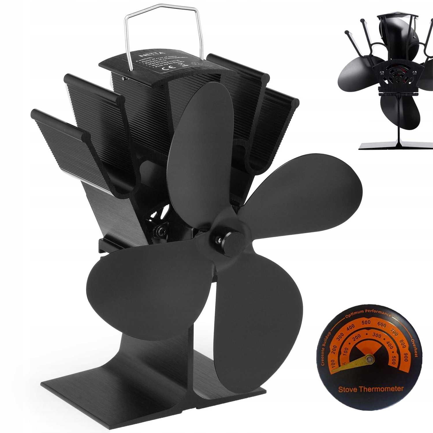 ④ Простий у встановленні та використанні: просто помістіть вентилятор печі на гладку плоску поверхню печі біля бічної або задньої частини труби печі. Працює, коли поверхня духовки гаряча.