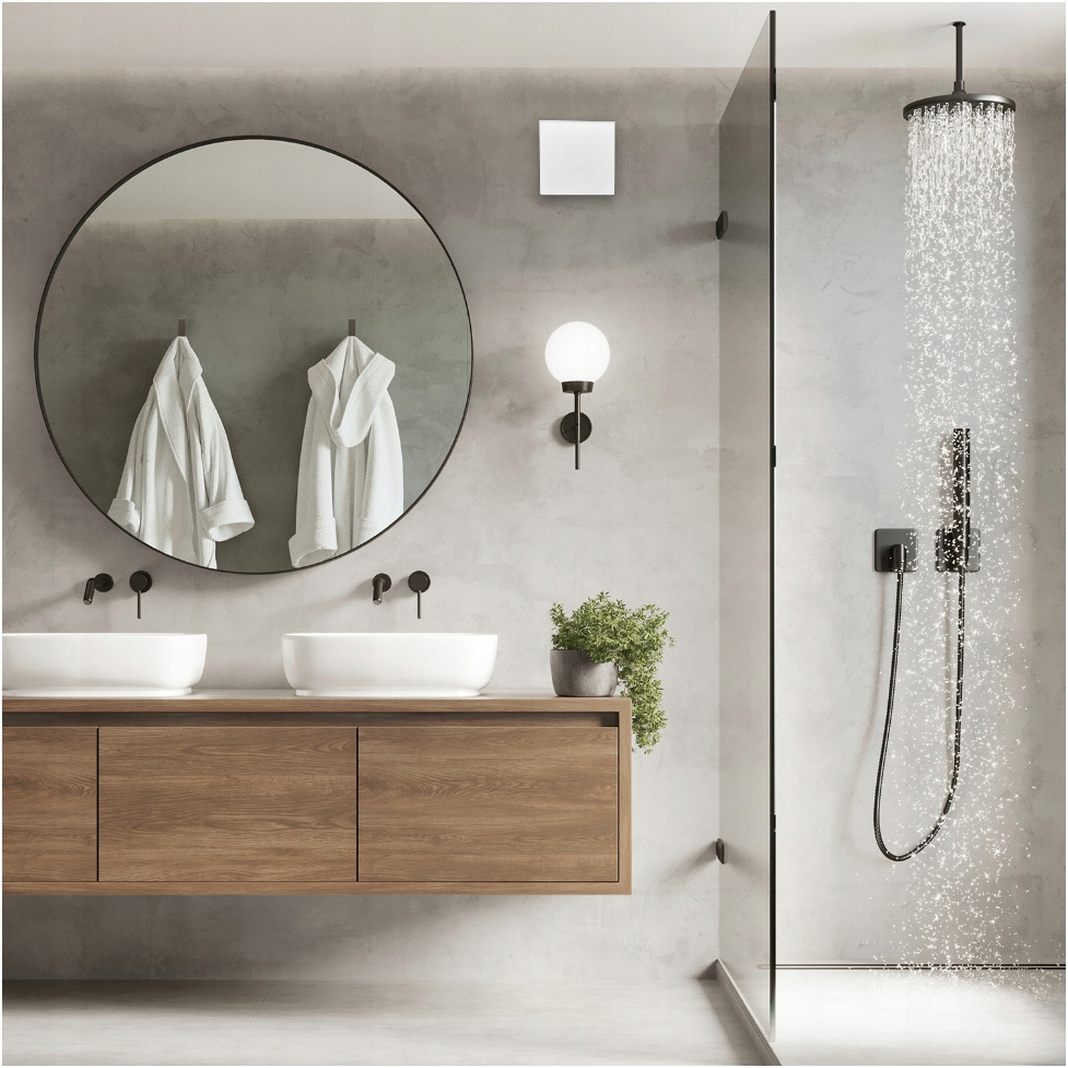 Вентилятор для ванної кімнати 100fi, біле скло, дуже ефективний, тихий польський продукт