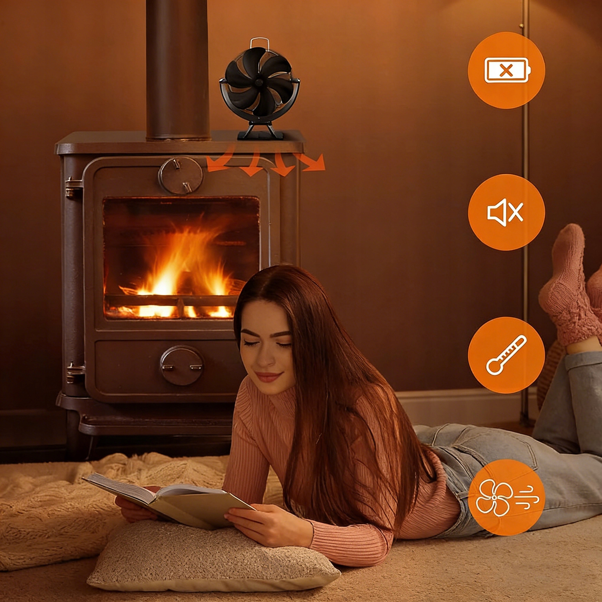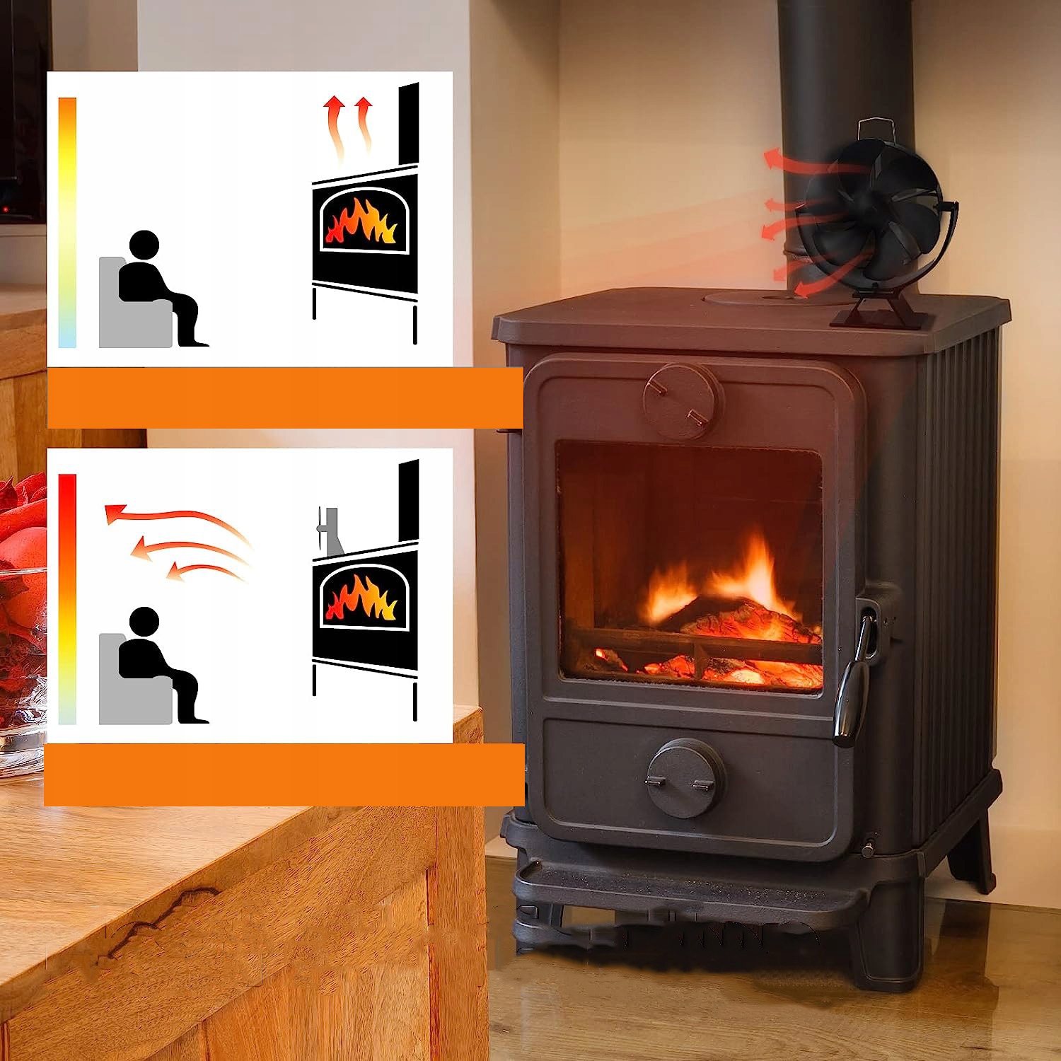 🔥🔥🔥Екологічно чистий: Для камінного вентилятора не потрібні батареї чи джерело живлення. Виробляє енергію завдяки теплу від каміна.