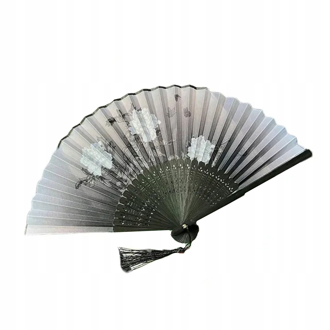 вентилятор з бамбуковим скелетом з різьбленими прикрасами та тканиною з барвистим принтом. Вентилятор не тільки надасть вам полегшення в спекотні літні дні, але також є чудовим доповненням до багатьох випадків. Наприклад, для карнавалу, тематичних подій, фотобудки або для розташування. Його також можна використовувати як декоративний елемент. Відкритий діапазон має розміри 21х38 див.
