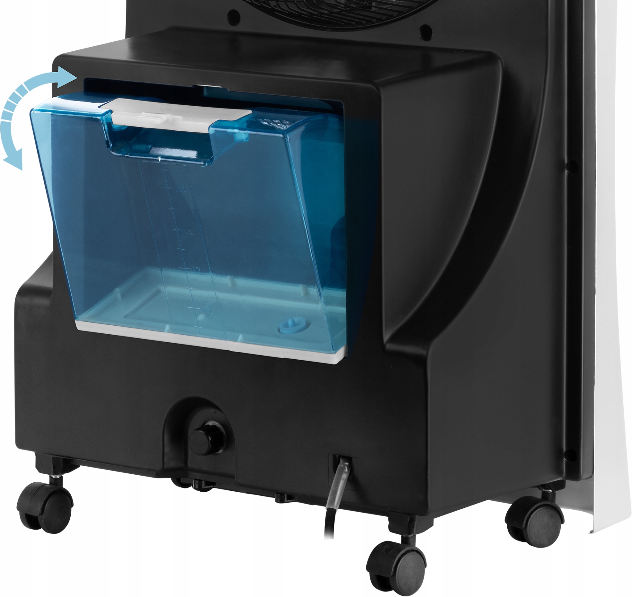 охолоджувач повітря, іонізатор, повітряний фільтр, зволожувач повітря, пульт дистанційного керування, таймер, 3 режими High/Mid/Low, автоматичне горизонтальне та вертикальне коливання, об’єм 5,5 л, потужність охолодження 70 Вт, 220-240 В 50 Гц, 70 Вт , рівень шуму 61,6 дБ