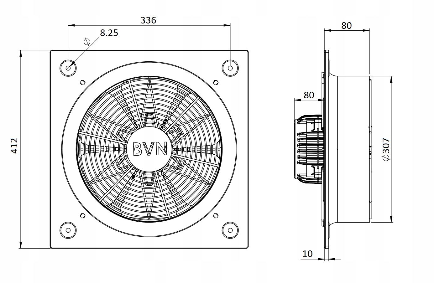 B6PAM Вентилятор корпусу BVN виготовлений з оцинкованого порошку сталевого листа в чорному кольорі, а ротори виготовлені з високоякісної пластику.